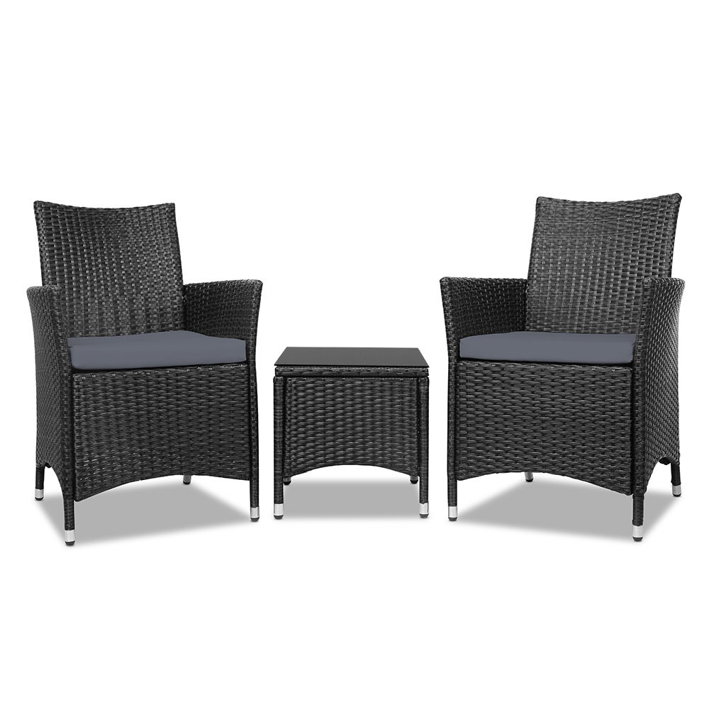 Gardeon 3pc Bistro Wicker Outdoor Furniture Set Black