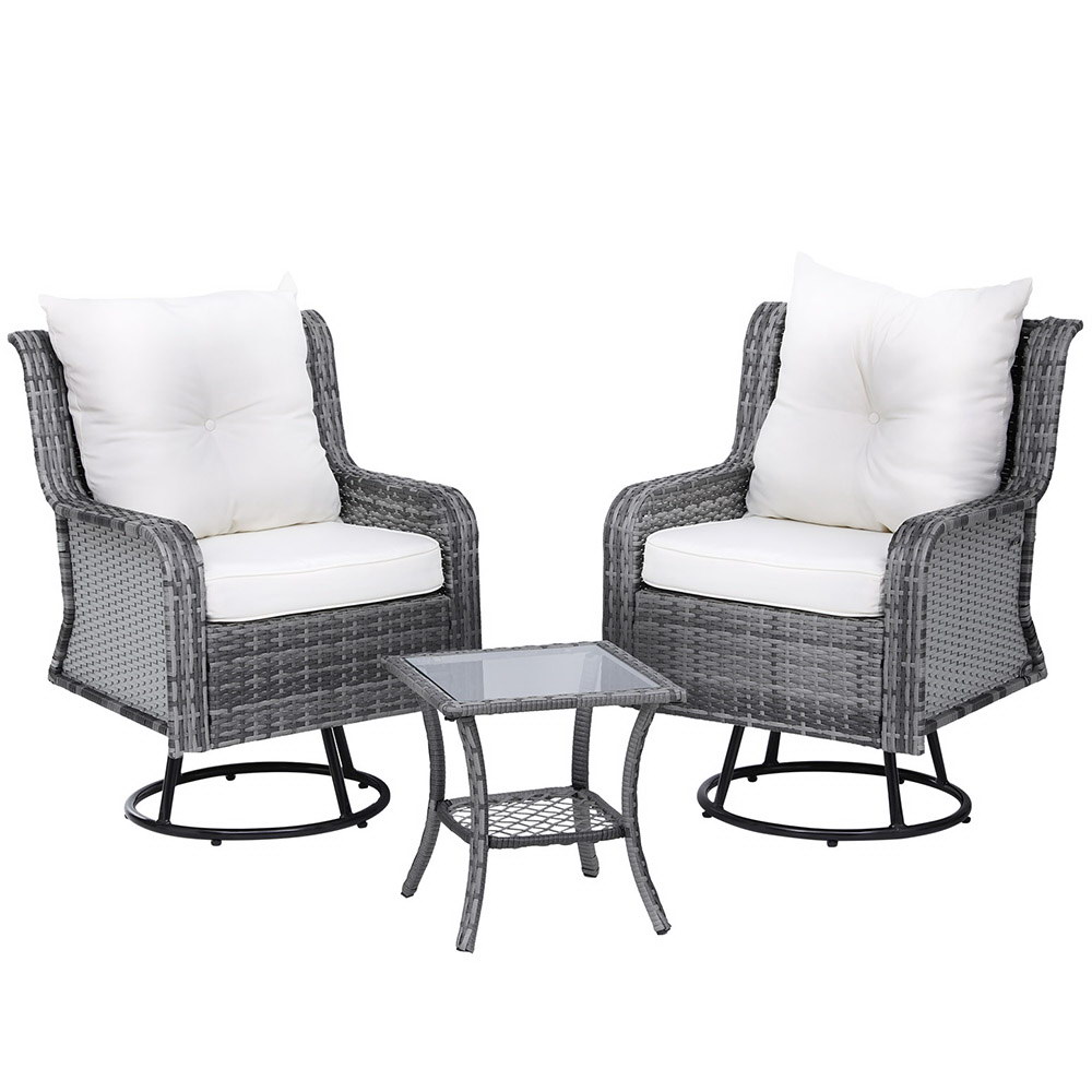 Gardeon 3PC Outdoor Furniture Bistro Set Lounge Wicker Swivel Chairs Table Cushion Grey