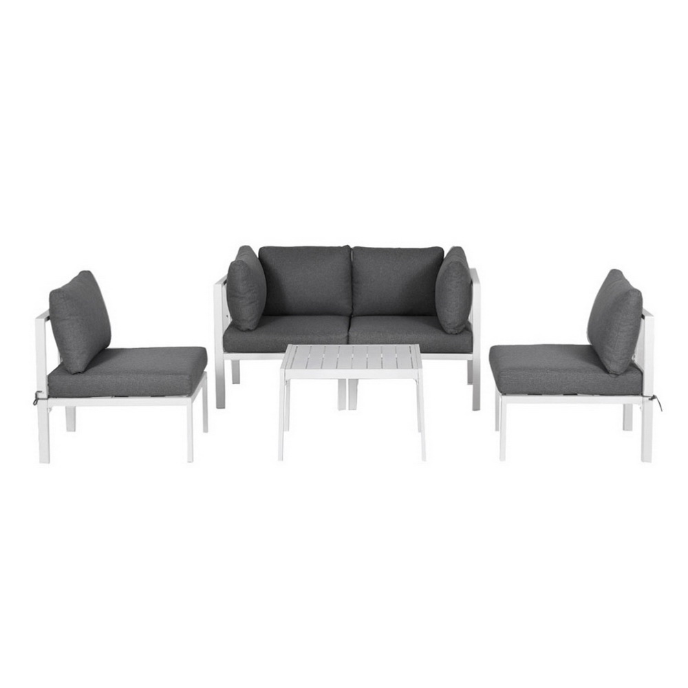 The set is easy to assemble, and you can easily configure the seating into your perfect outdoor set-up. The set is made using powder-coated aluminium for rust and water resistance, while the outdoor cushions feature water and UV-resistant covers and thick 10cm high-density foam for comfort.