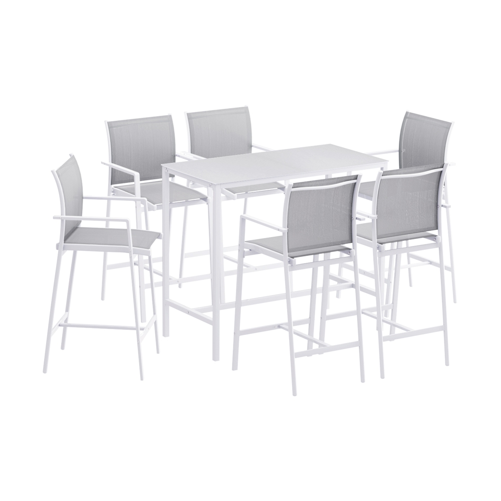 Gardeon 7PCS Outdoor Bar Set Stools Dining Chairs Table Patio Steel Bistro Set White