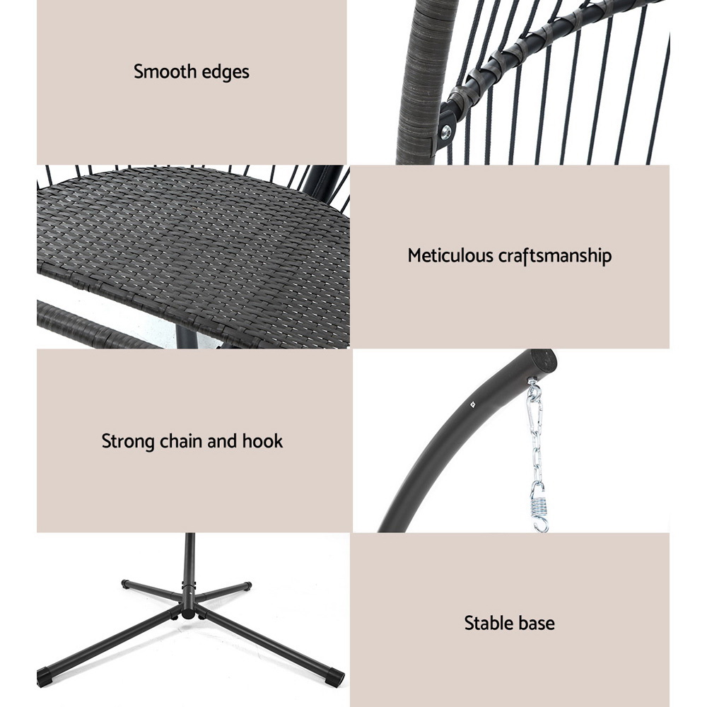 Gardeon Outdoor Egg Swing Chair Wicker Rope Furniture Pod Stand Cushion Grey