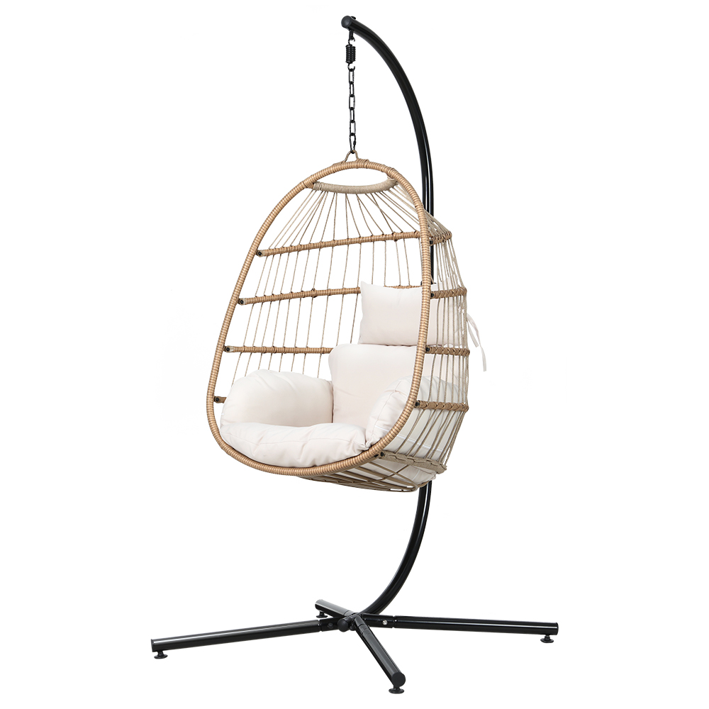 Gardeon Outdoor Egg Swing Chair Wicker Rope Furniture Pod Stand Foldable Yellow