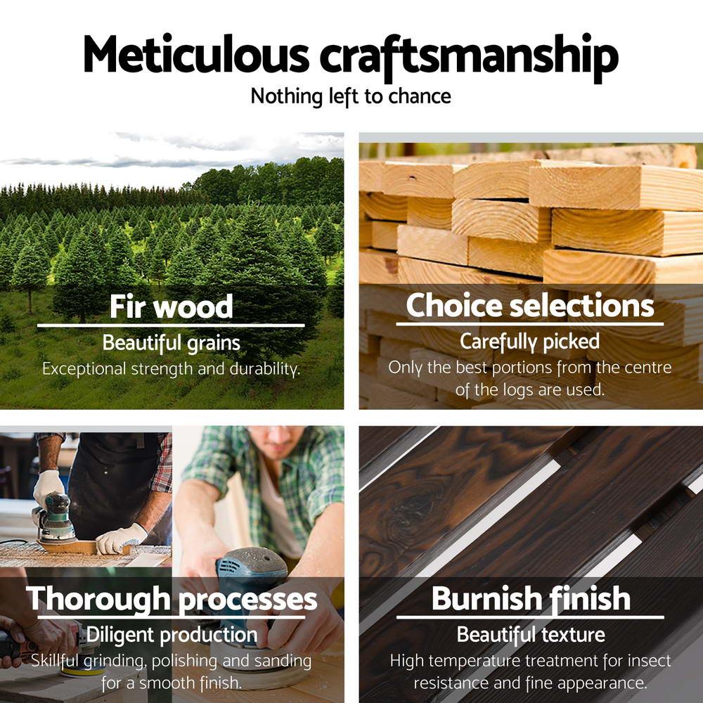From its period styling to its rustic imported Fir wood design, the Wagon Wheels Bench is solidly built to seat two persons comfortably. The attention to details is excellent with finely crafted wagon-wheel armrests, a smooth and supportive backrest and exceptional strength and beautiful grains from the Fir wood finish. In fact, the Bench can take on a massive weight of up to 220kg. Better still, the Fir wood is weather-resistant, UV-resistant and blessed with a natural resistance to rot and pests. Everything you want in a durable and longlasting garden bench under the great Australian sun and rain.