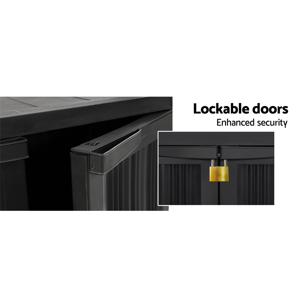 Gardeon Outdoor Storage Cabinet Box 92cm Lockable Cupboard Sheds Garage Adjustable Black
