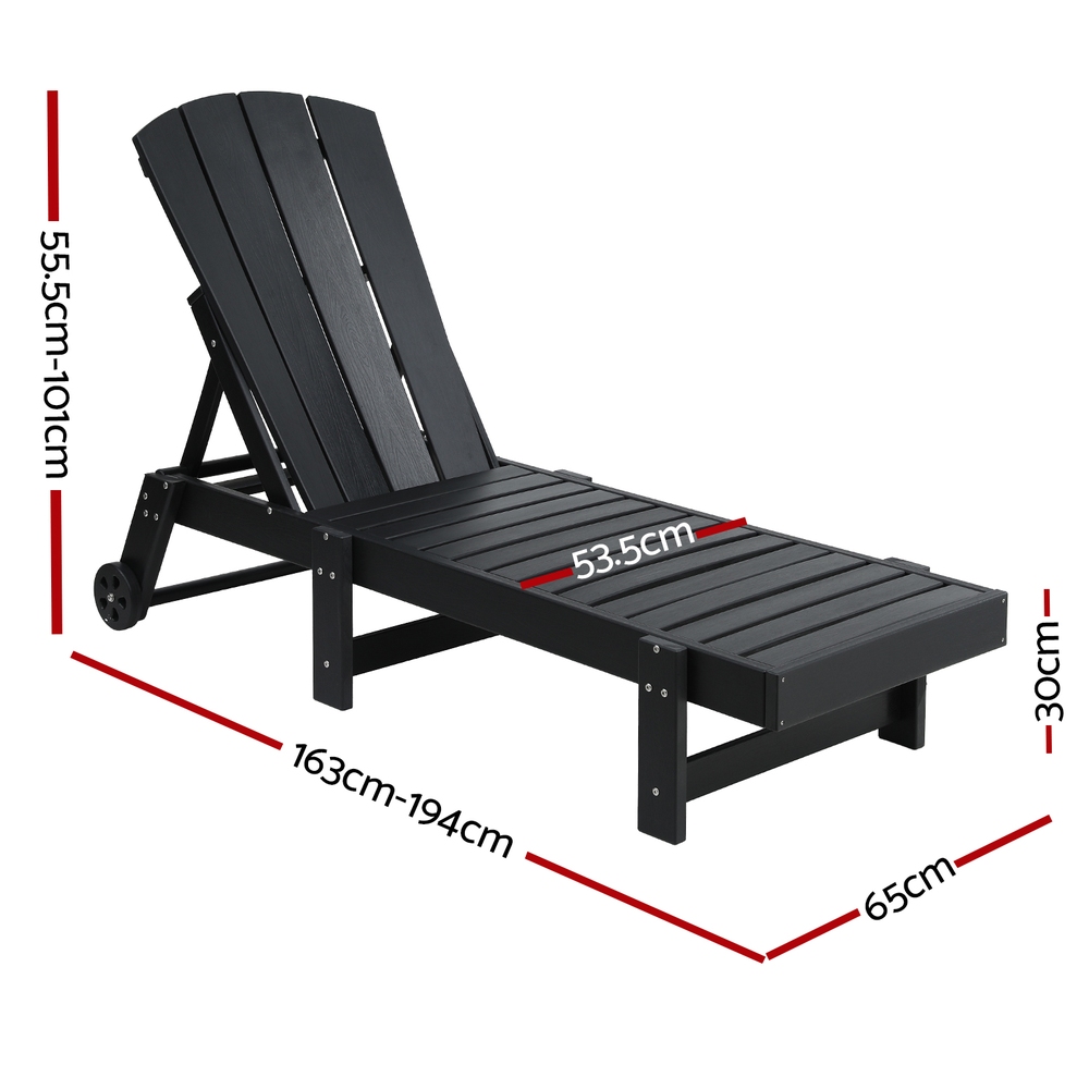 Gardeon Sun Lounge Beach Chair HDPE Adirondack Lounger Patio Outdoor Furniture with Wheels Black