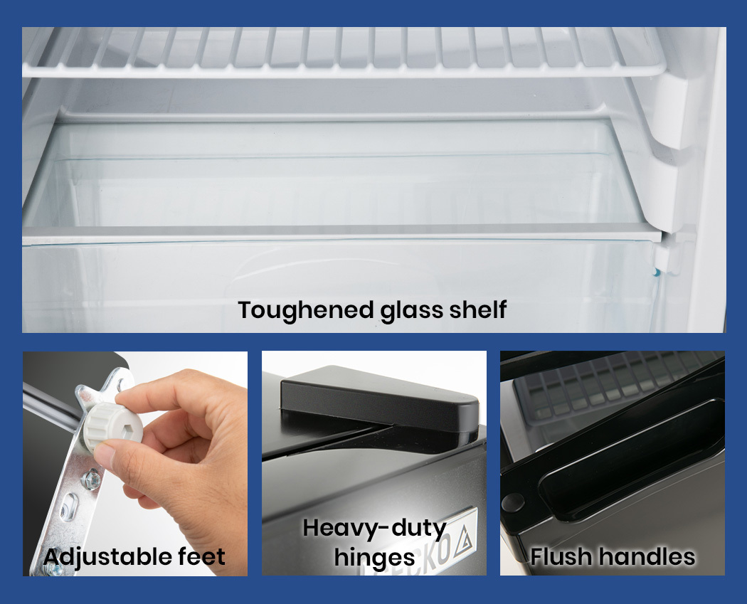 It boasts a generous capacity. Comfortably cater for long road trips in your motorhome or caravan. It has a 27L freezer compartment, and 68L refrigerator section with crisper, adjustable shelves and convenient egg tray. The rugged hinges, locking doors, adjustable feet and the ability to operate at up to a 30-degree incline make it ready for camping off the beaten path, or use on a yacht.