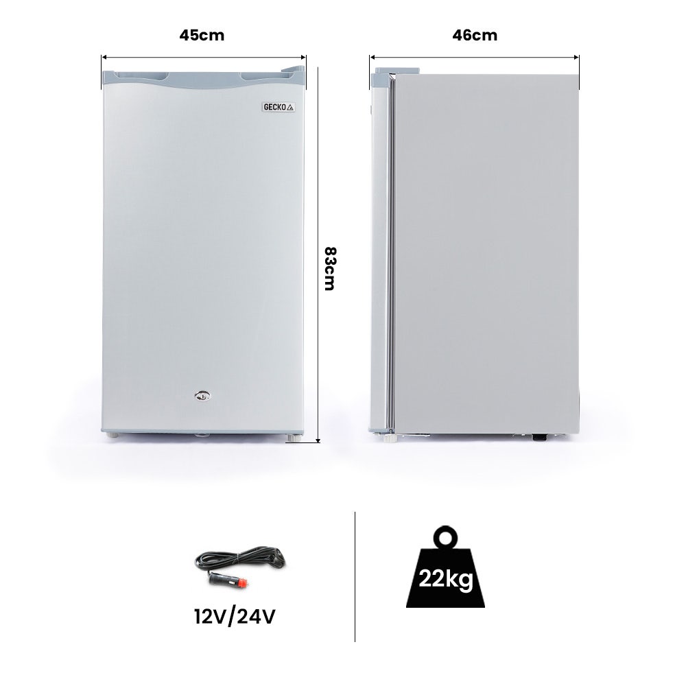 GECKO 95L Portable Upright Fridge, 12V/24V for Motorhome, Caravan, Silver