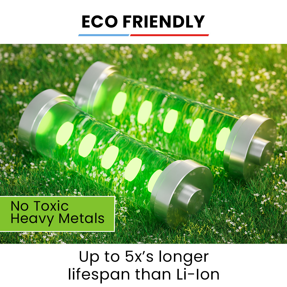 - Over 2,000+ charge cycles and safer, longer-lasting performance than Li-Ion