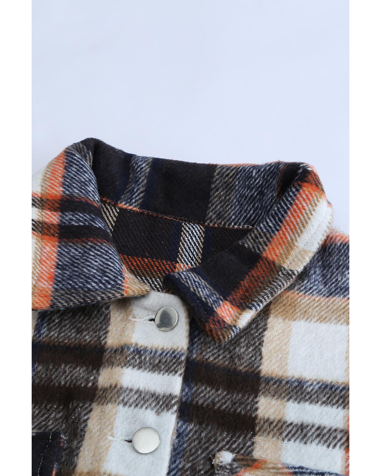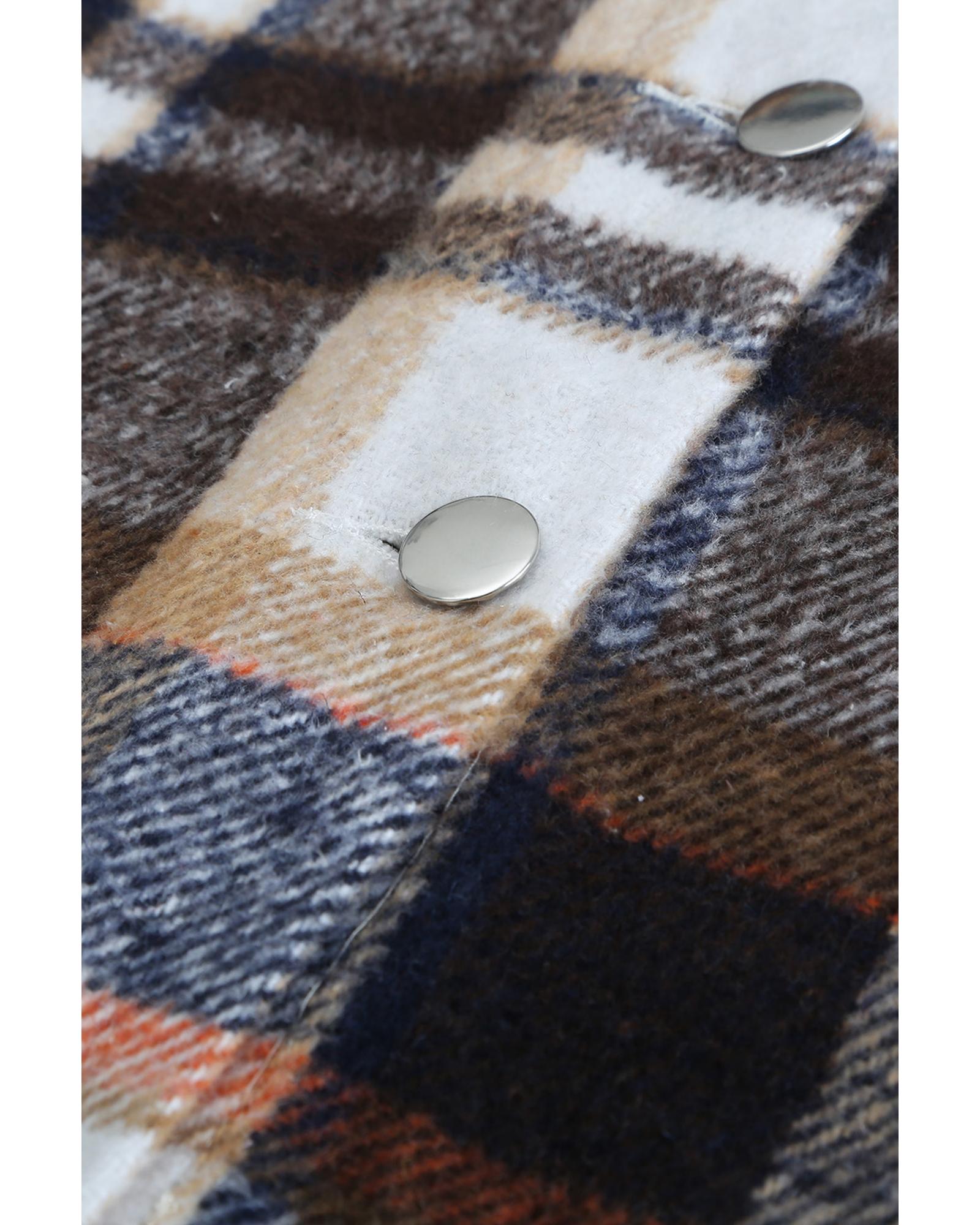 Geometric Plaid Print Pocketed Shacket – XL