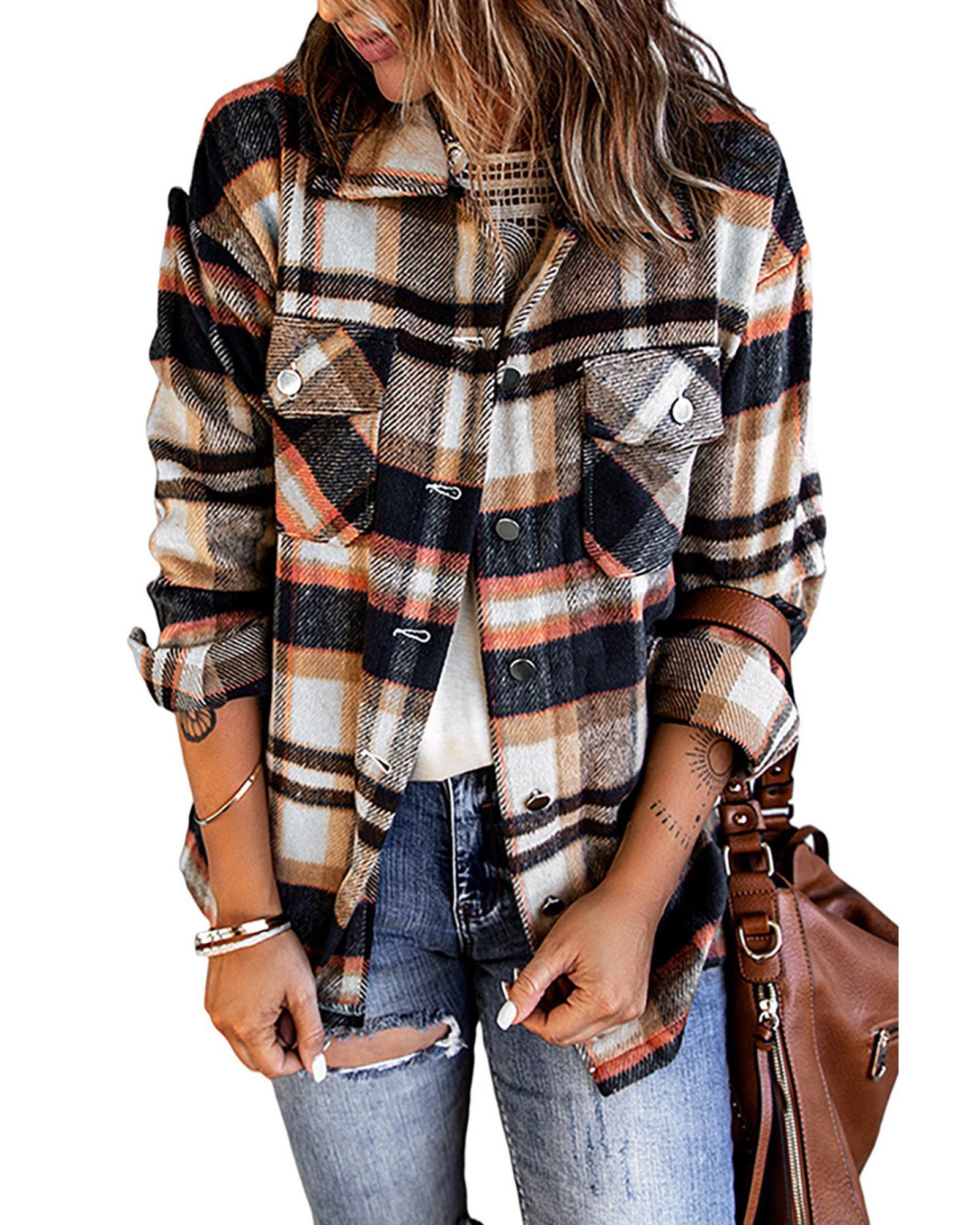 • Geometric plaid print shacket
