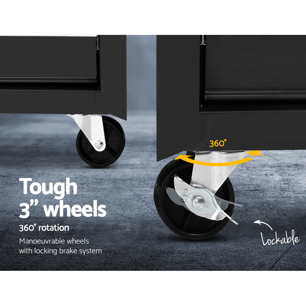 Giantz 7 Drawer Tool Box Cabinet Chest Trolley Storage Garage Toolbox Black