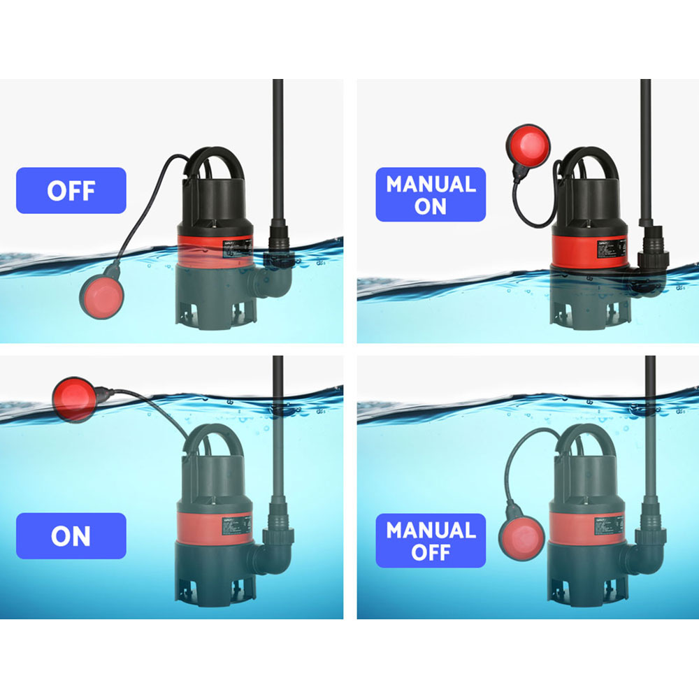 Feeling under the pump? Whether you need to empty your home pool for cleaning or hastily recover a flooded basement, the Giantz Submersible Pump is for you. Submersible pumps are perfect for a variety of situations, from setting up a home irrigation system to quickly draining ponds, tanks, pools or flooded areas. It operates quietly and efficiently, thanks to the heavy-duty oil-cooled electric motor that runs underwater. It can be submerged to a depth of eight metres and includes a universal fitting for 3 separate pipe sizes. It is designed to work with dirty water, with a maximum solid passage of 35mm, so you can work in areas with muddy, sandy, or otherwise contaminated water. The float switch holder allows you to control the pump manually and switches off automatically at low water levels. Finally, work anywhere with its portable design and includes a 10m cable with a standard AU plug. Drain your worries away with the Giantz Submersible Pump.