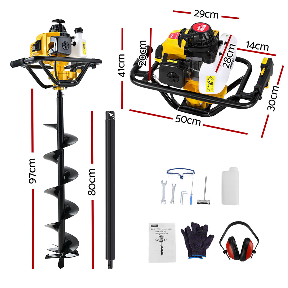 Giantz 82CC Post Hole Digger 200mm Petrol Drill Auger Extension Bits