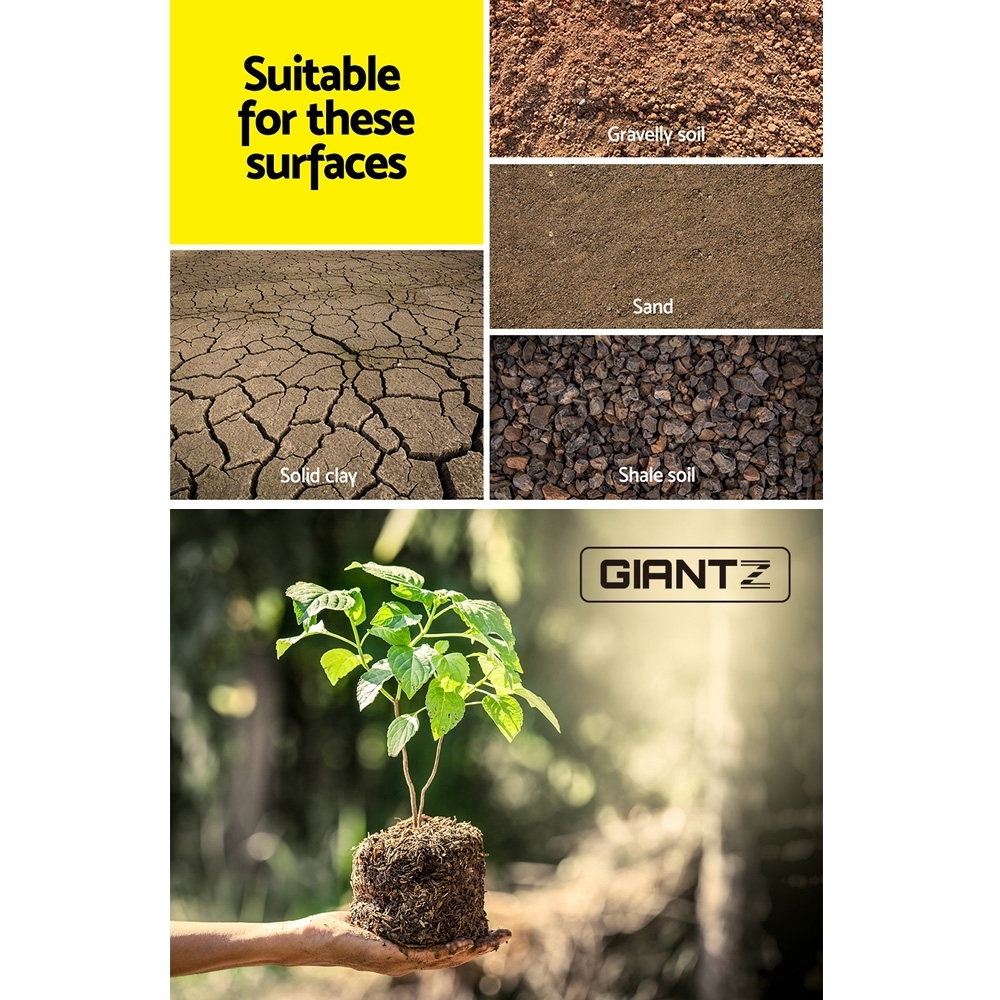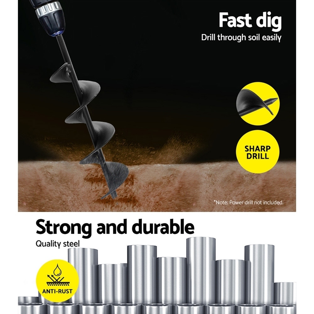 For past preparation of planting groundwork, nothing beats the Giantz Power Auger to complement your power digging. The augur is made of heavy-duty steel for durability and strength and will not easily succumb to tough handling and drilling. It can dig up to 30cm deep depending on the model with a 7.5cm diameter hole and is compatible for use with most power drills. It will fit into a 13mm chuck perfectly. It can used in most ground surfaces including solid clay, gravel soil, sand and shale soil.
