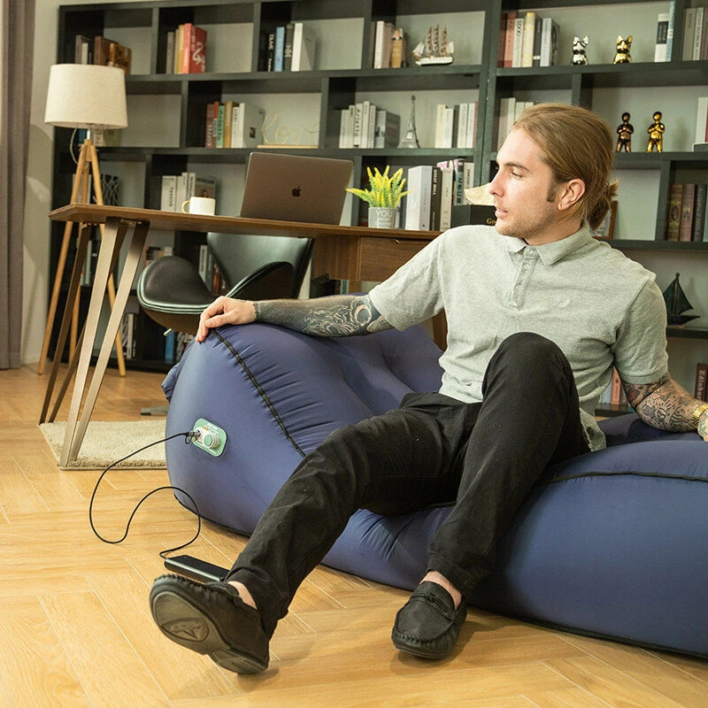 Giga Lounger Lazy Camping Air Bag Sofa Bed for Beach Sleeping Navy blue