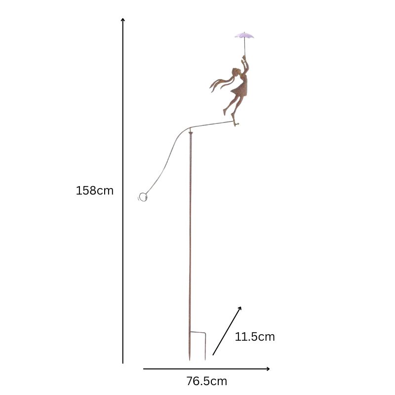 Girl w Yellow Umbrella Spinner / Balancing Garden Stake 62cm