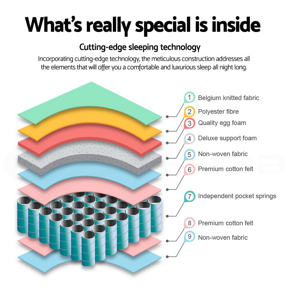 Covered with premium Belgium knitted fabric for unsurpassed softness and body heat dissipation, the Giselle Bedding Firm Mattress is also highly breathable and dust mite and mould-resistant with no necessity to turn over the mattress, unlike other inferior alternatives. Handy side handles enable you to position the mattress easily.