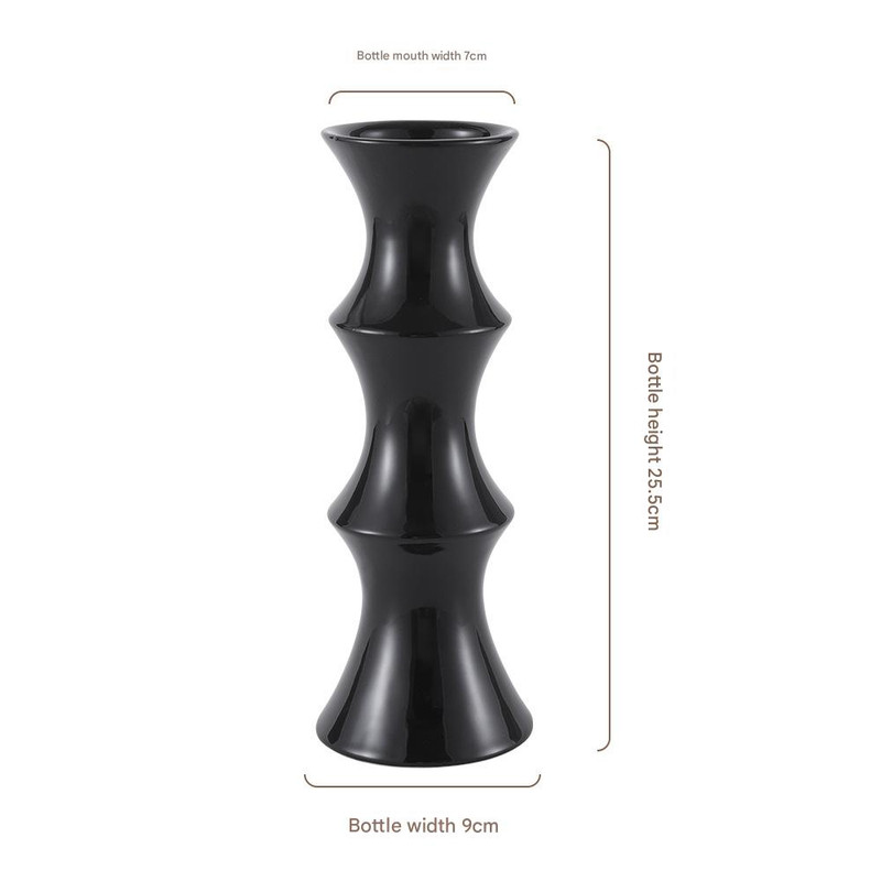 Glossy Black Ceramic Vase – Unique Bamboo-Look Design (25.5x9x7cm)