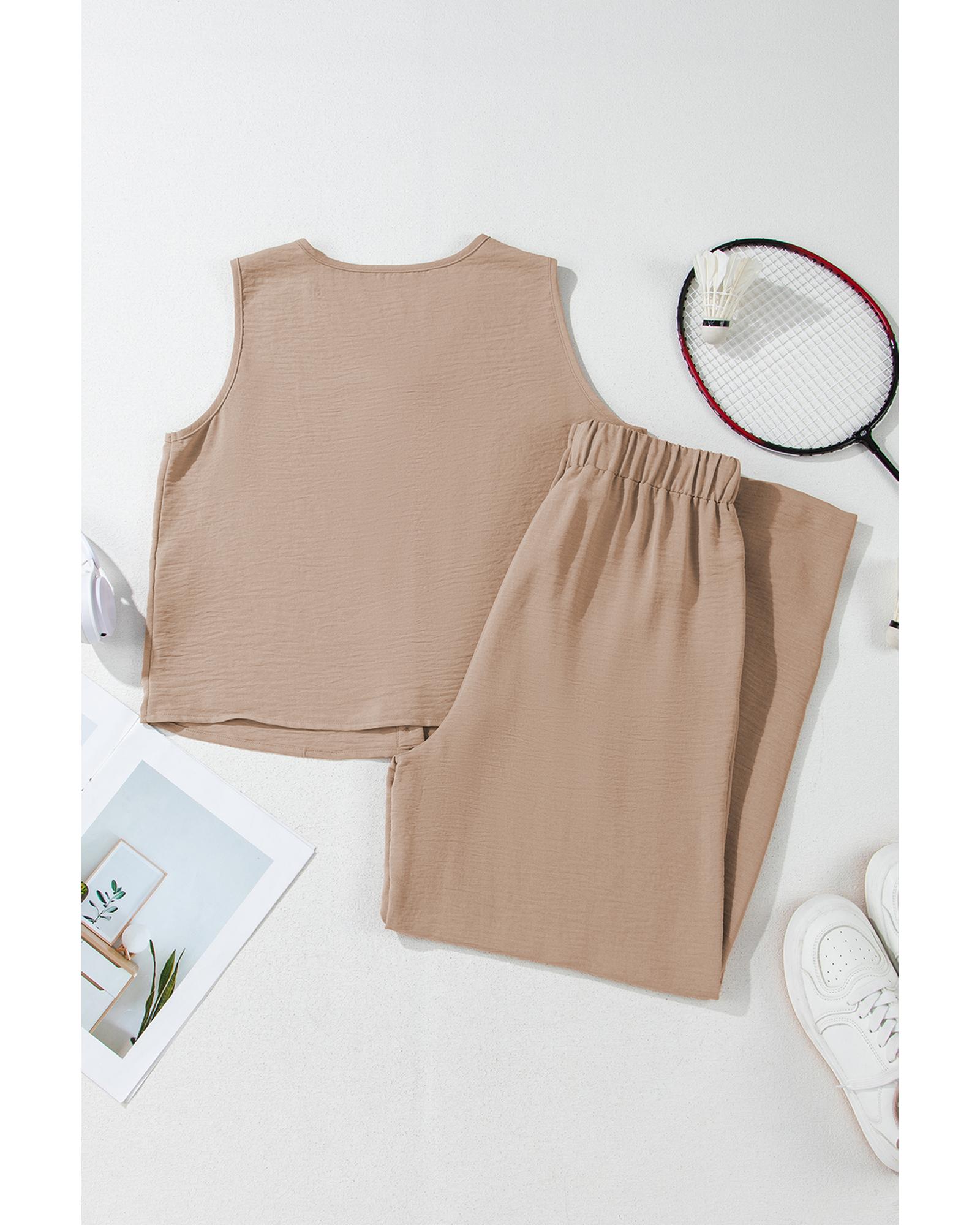 - Stylish buttoned vest and wide leg casual pants coordinate set
