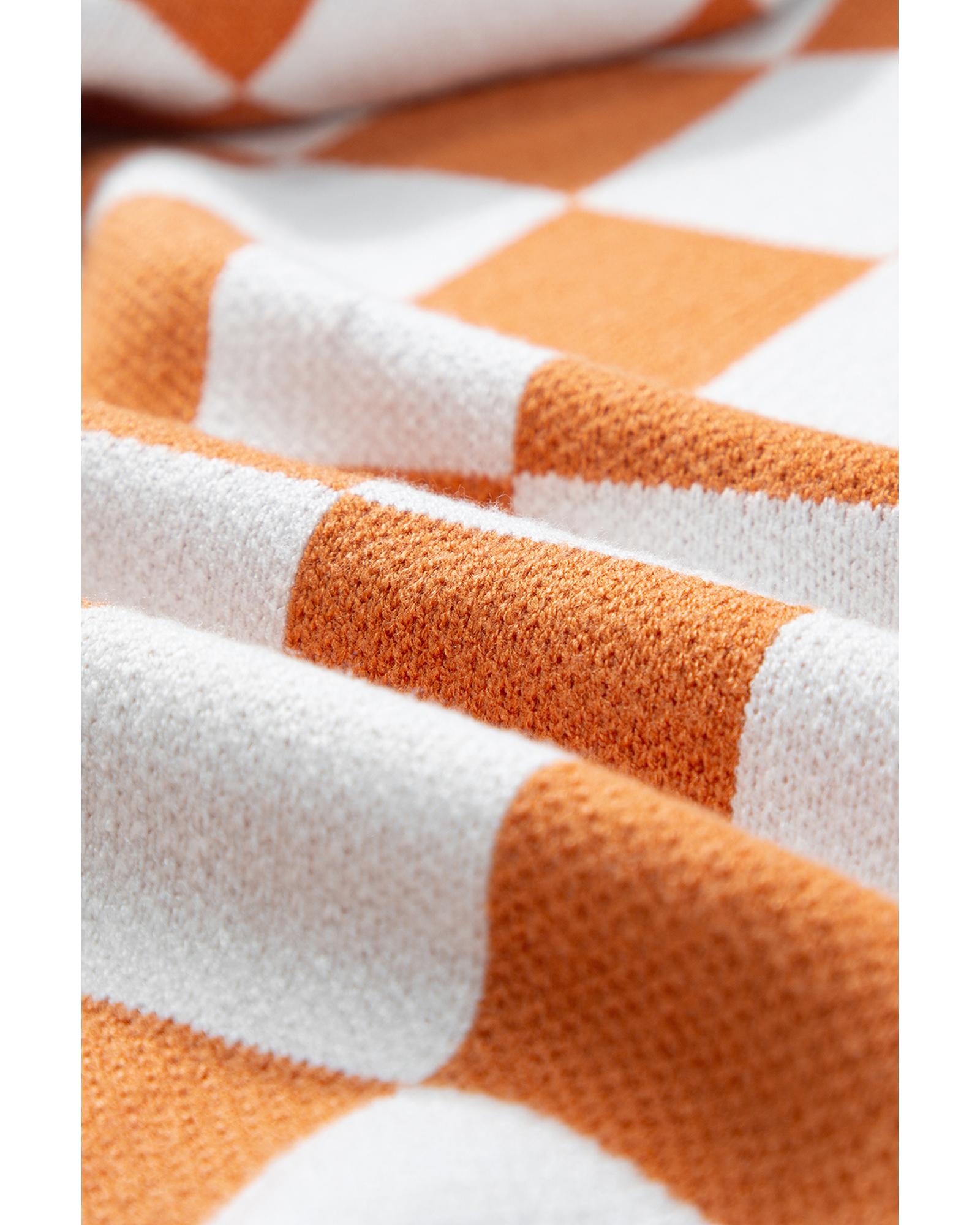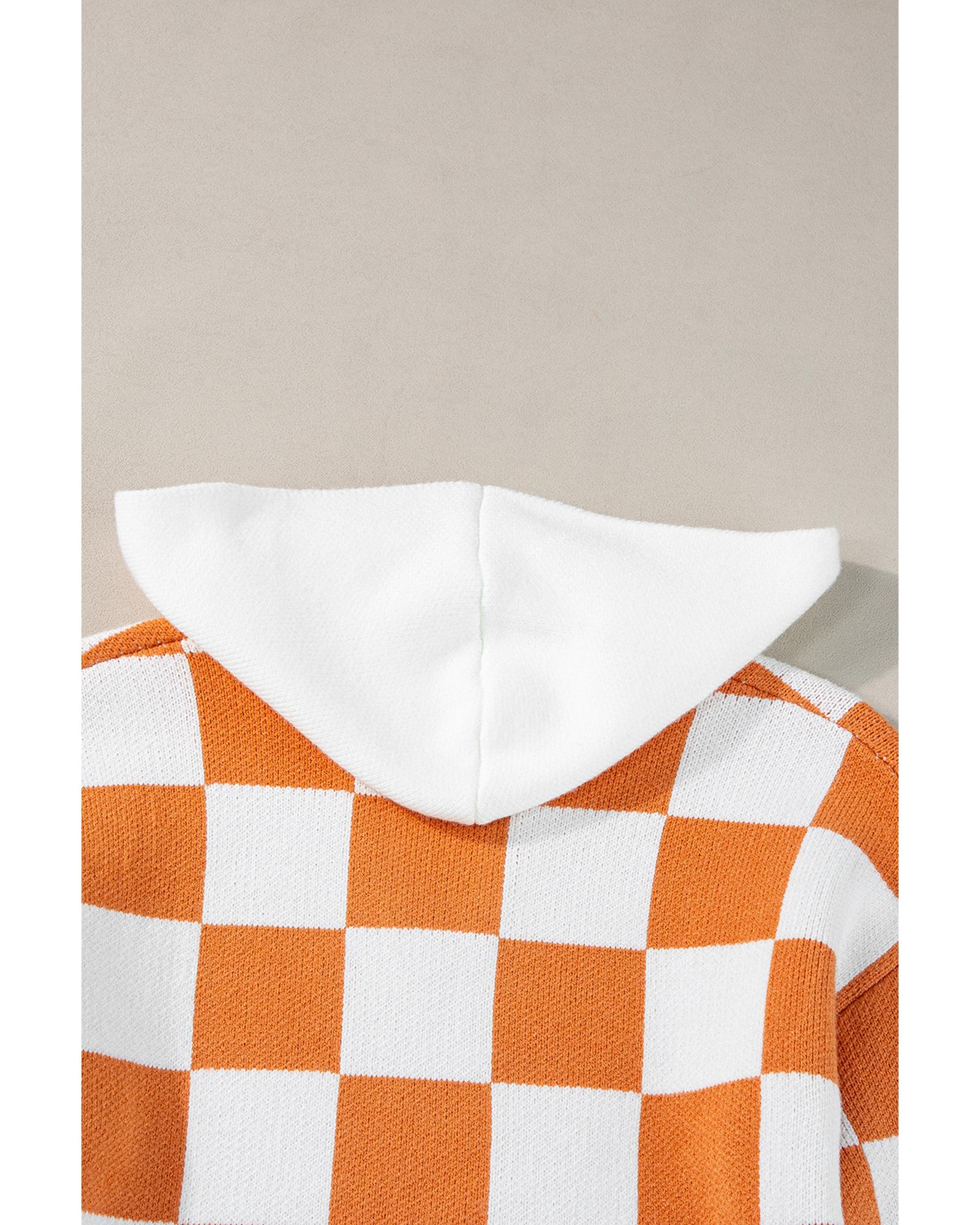 Gold Flame Checkered Split Neck Contrast Kangaroo Pocket Hooded Sweater – M