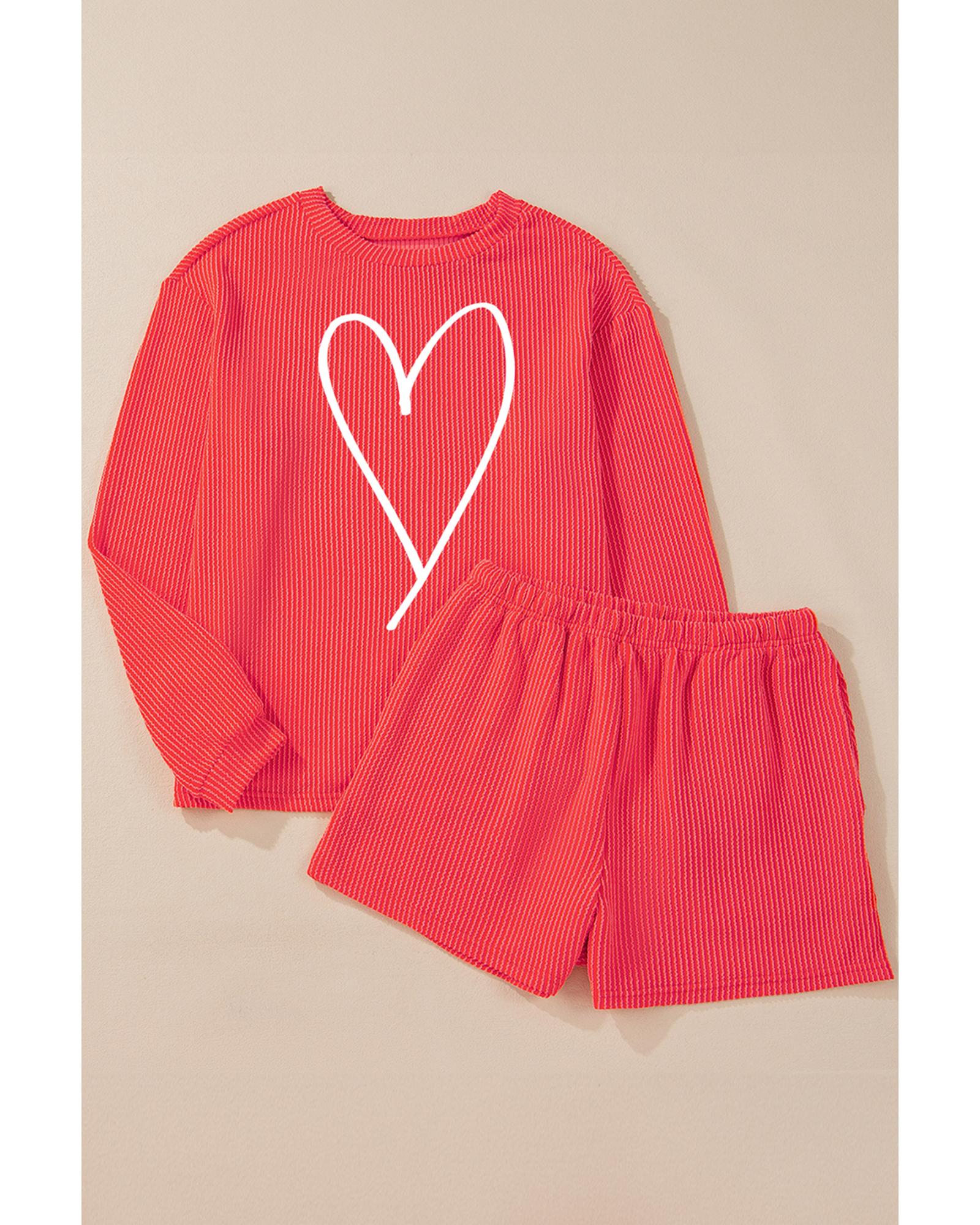 Gold Flame Heart Shape Graphic Corded Pullover and Shorts Outfit – M