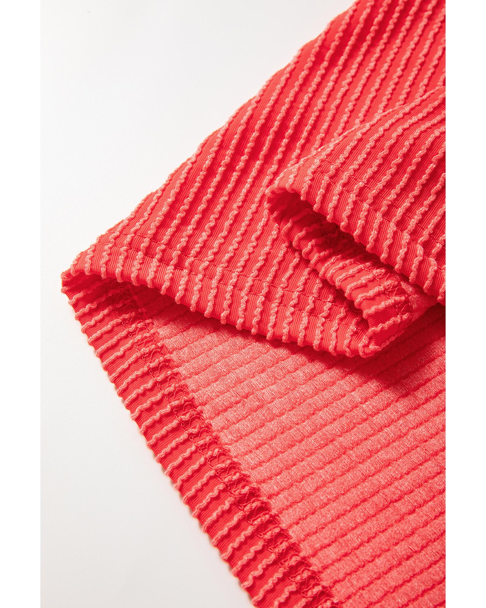 Coffee Color Contrast Loose Pullover and Lace-up Waist Skort Set - L