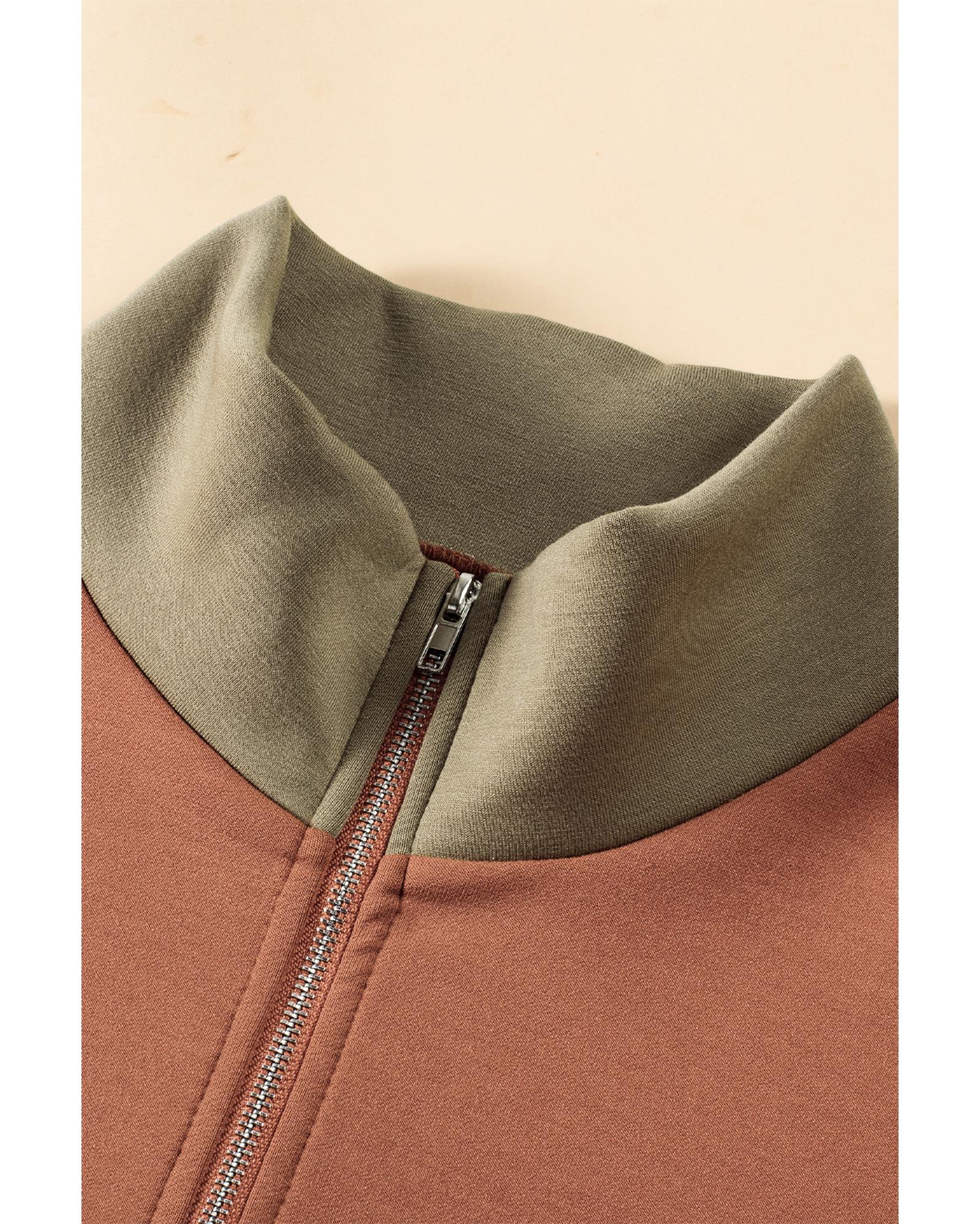 Gold Flame Plus Size Colorblock Exposed Seam Quarter Zip Sweatshirt – 2X