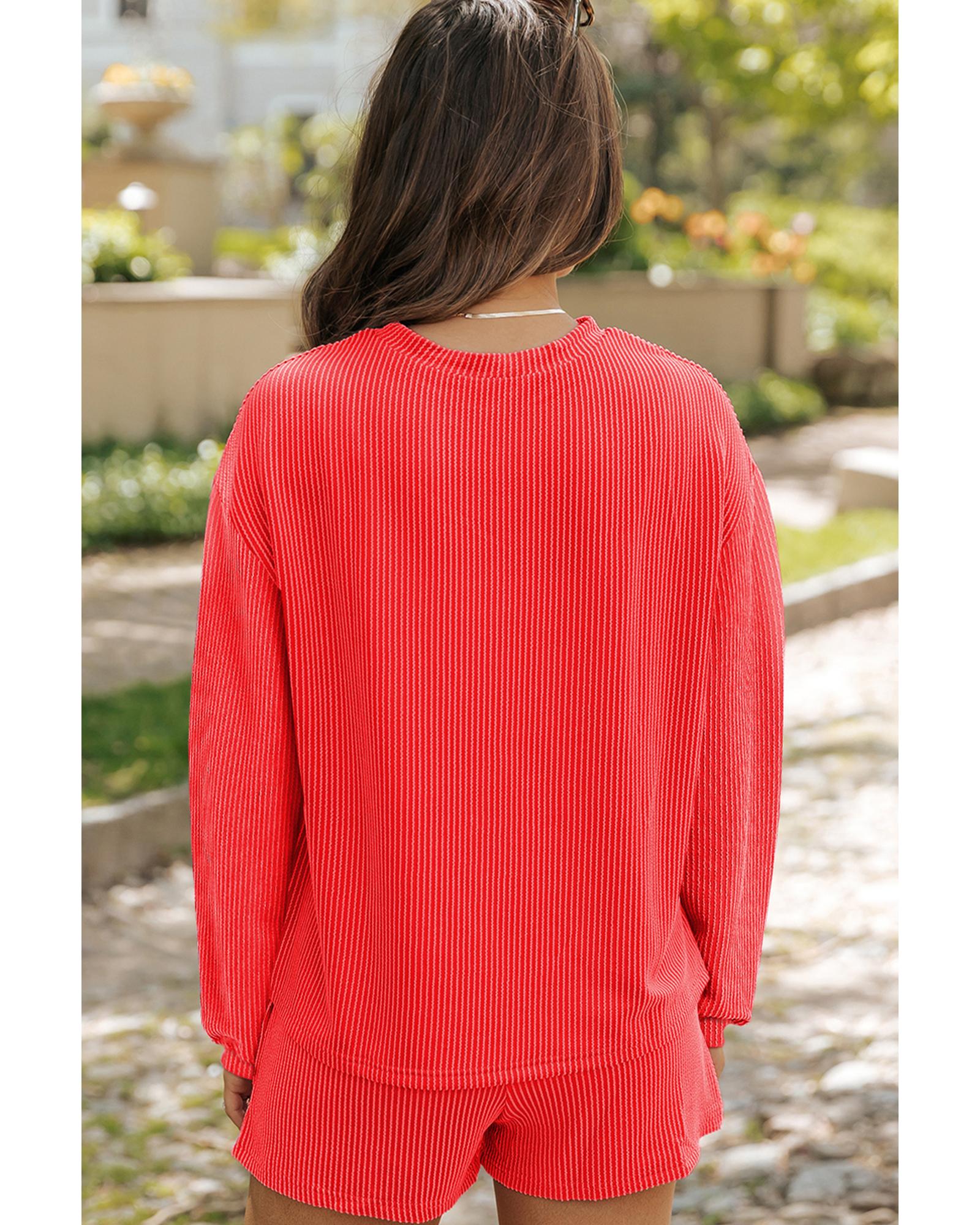 Orange Sequin USA Flag Star Graphic Corded T Shirt and Shorts Set - S