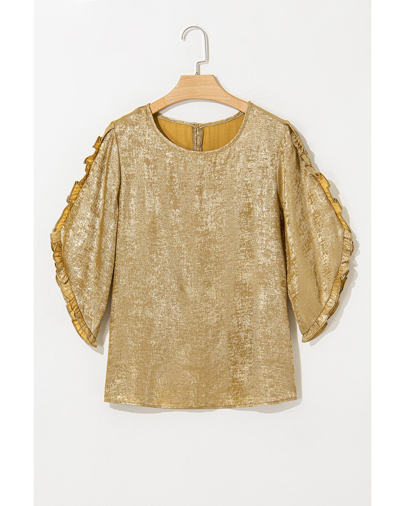 Gold Metallic Luster Frilled Half Sleeve Blouse – M