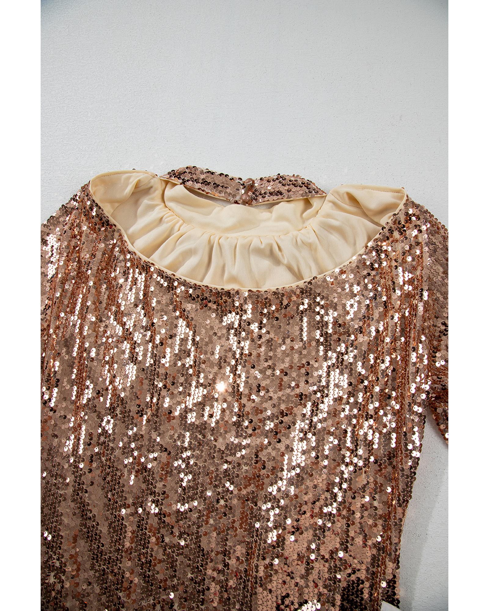 Gold Sequined Long Sleeve Cutout Back Mini Dress – XL