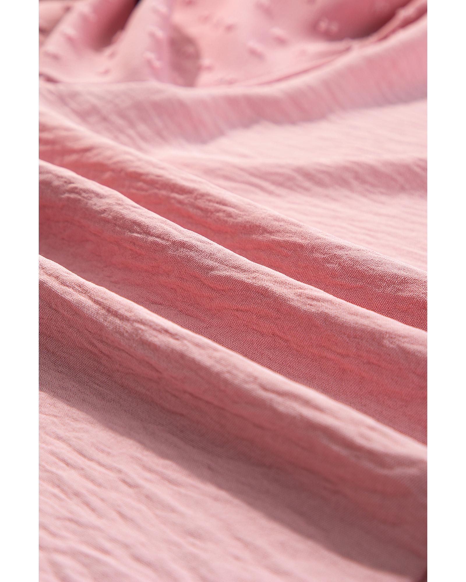 Gossamer Pink Swiss Dot Balloon Sleeve Loose Blouse – L