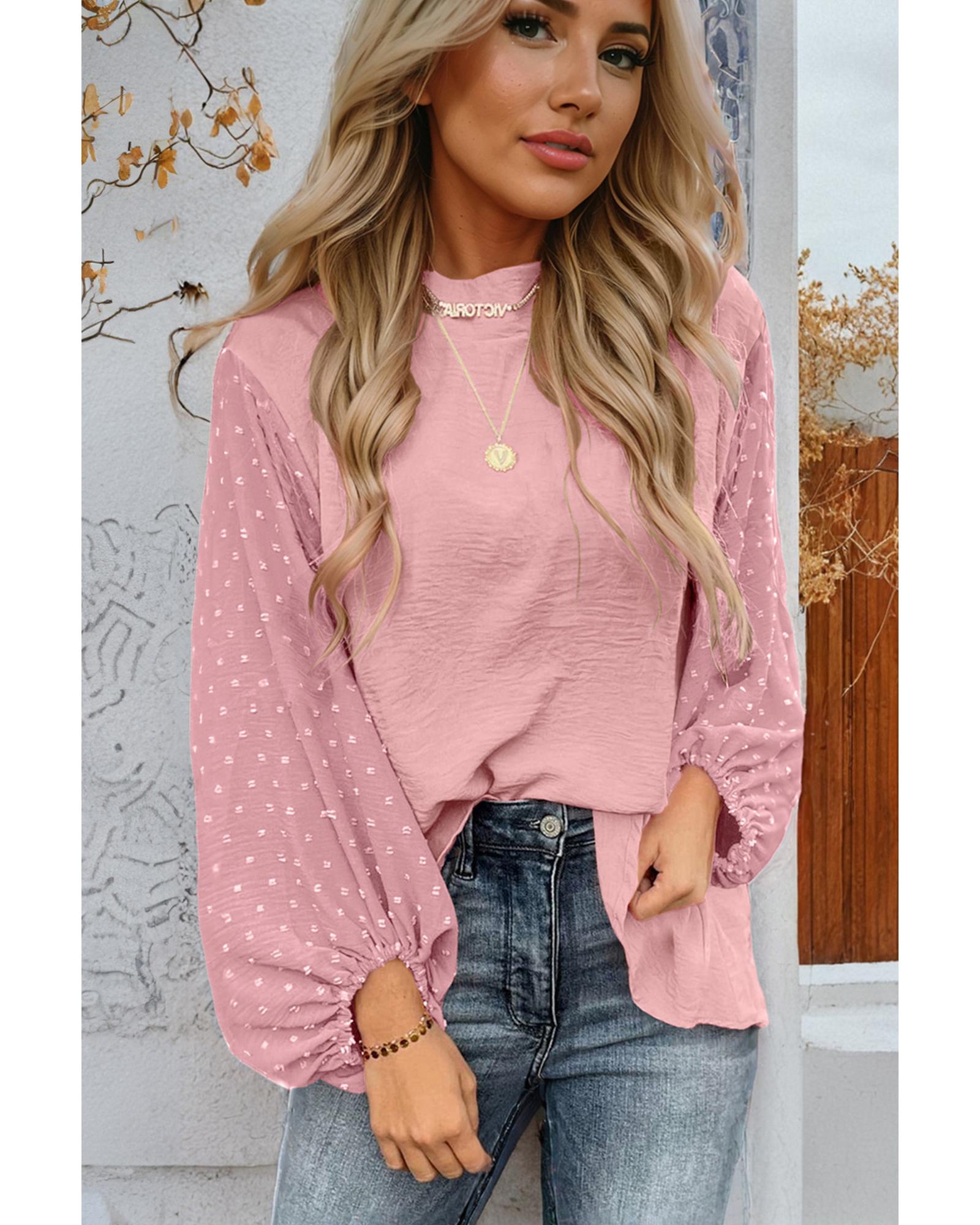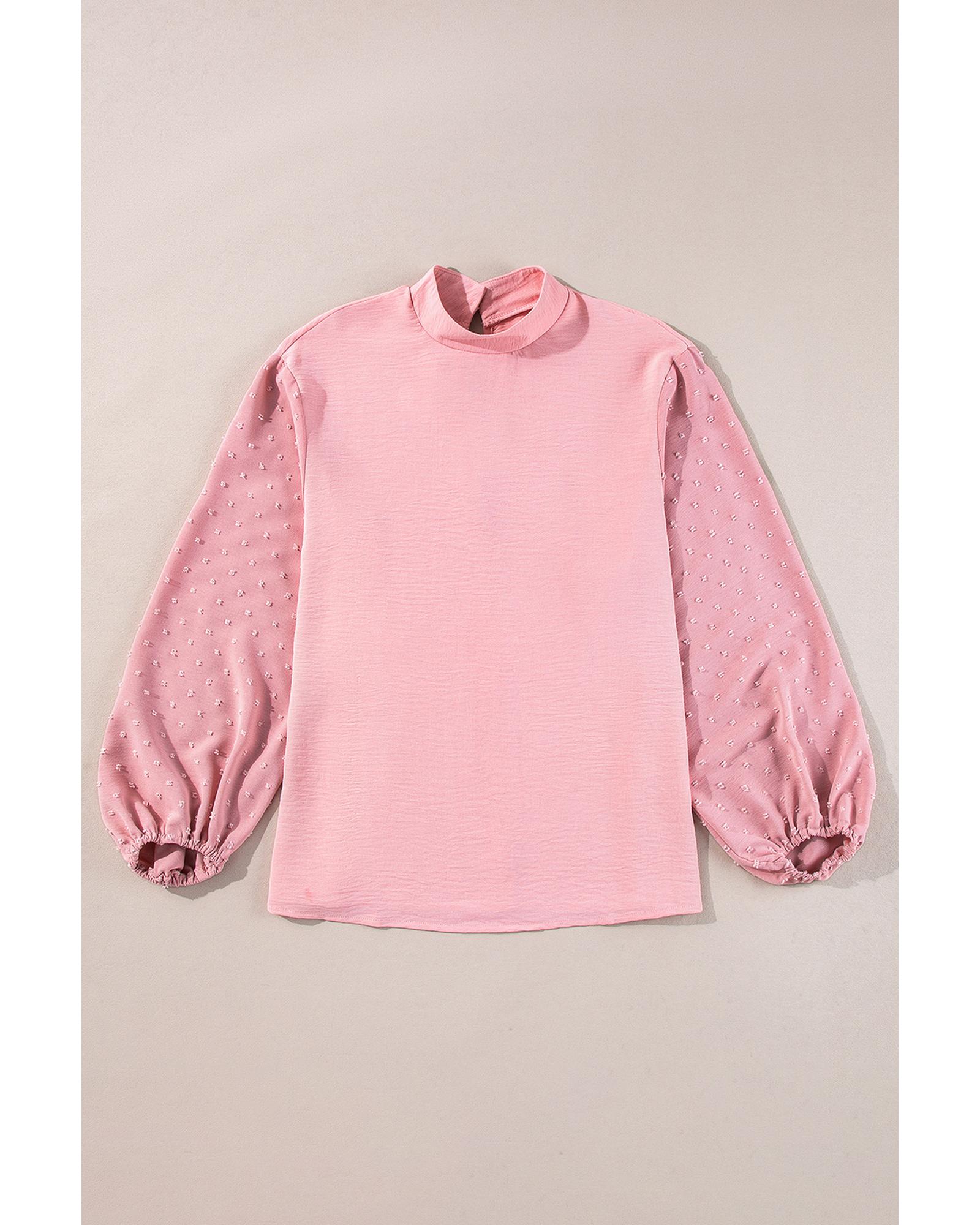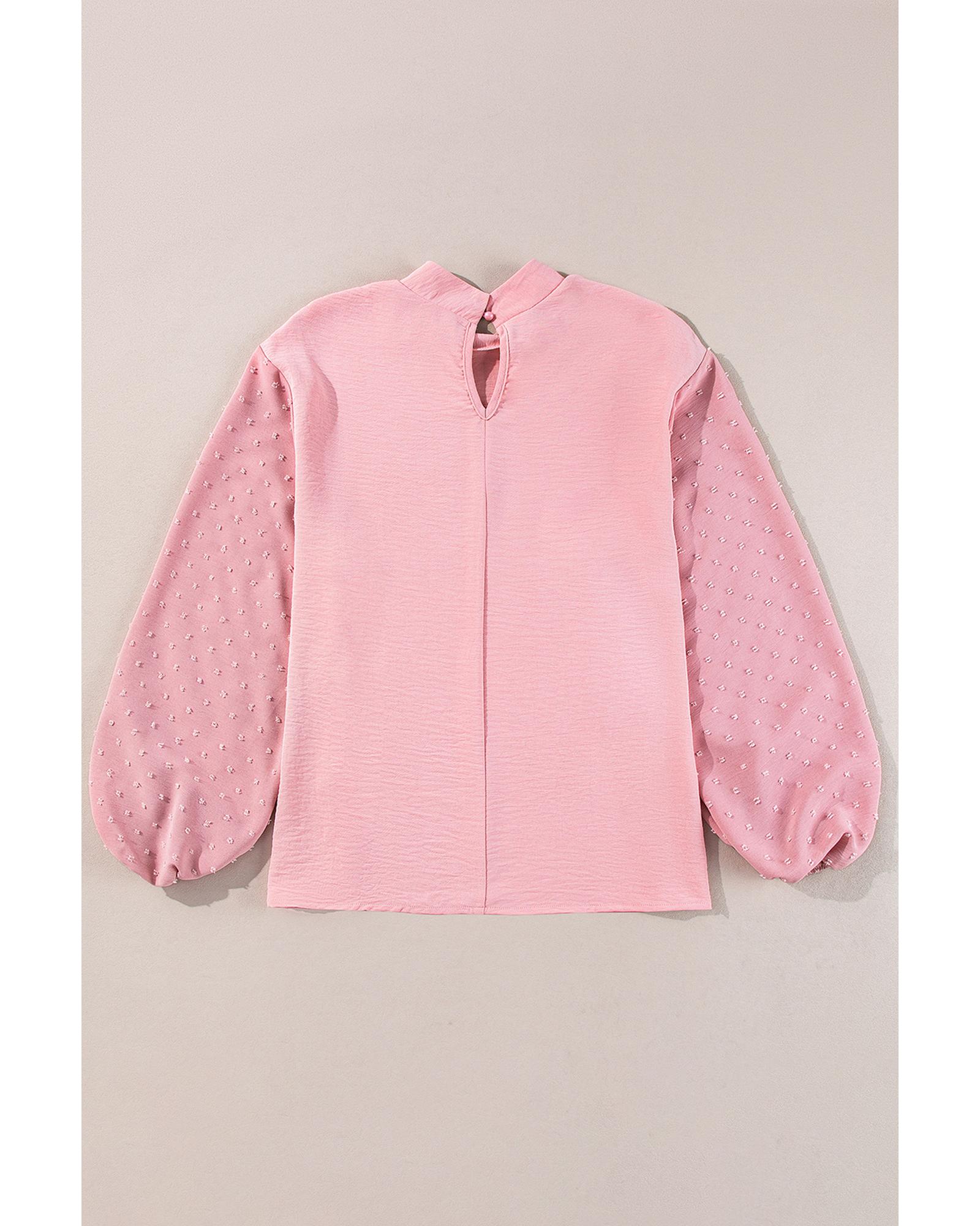 Gossamer Pink Swiss Dot Balloon Sleeve Loose Blouse – S