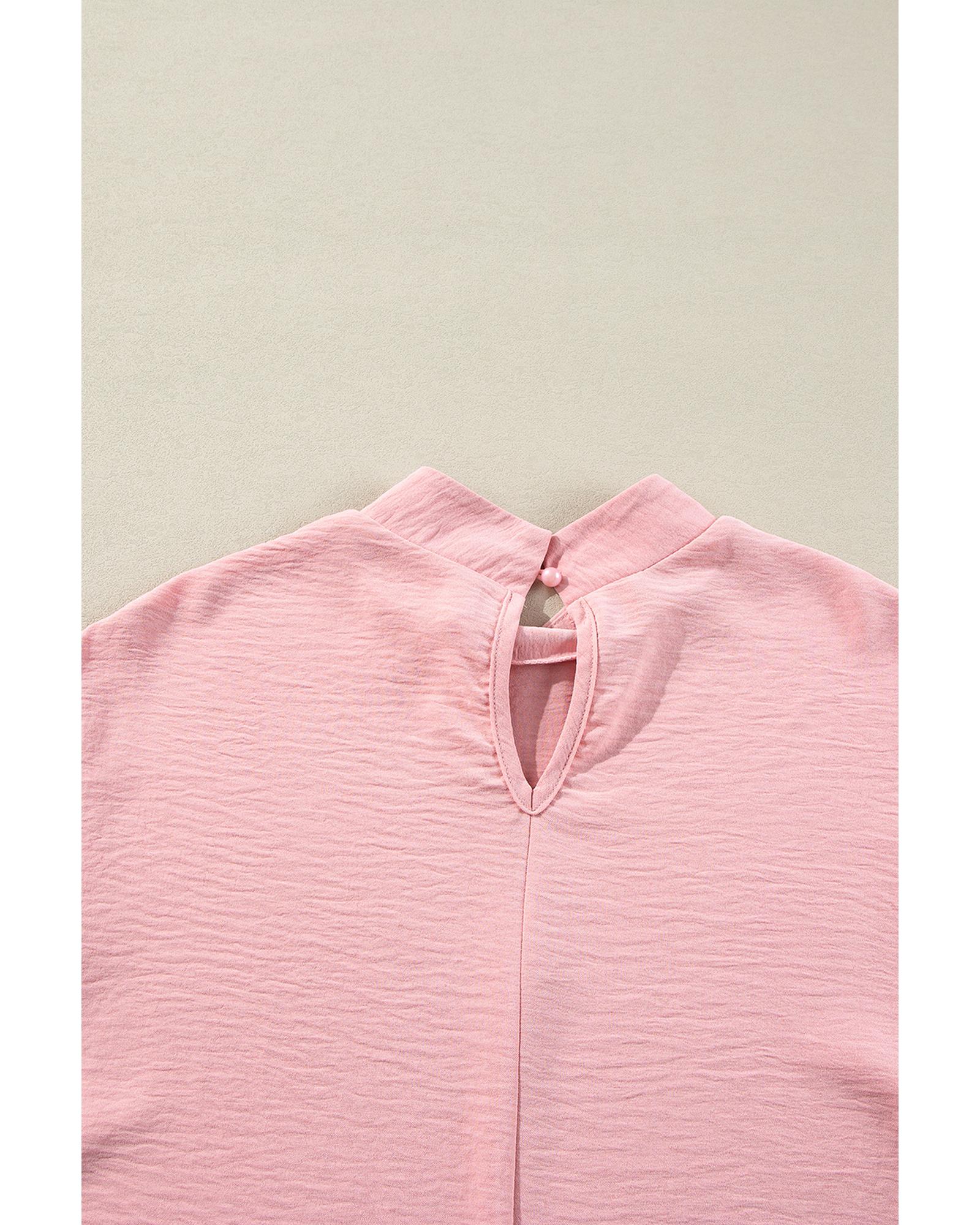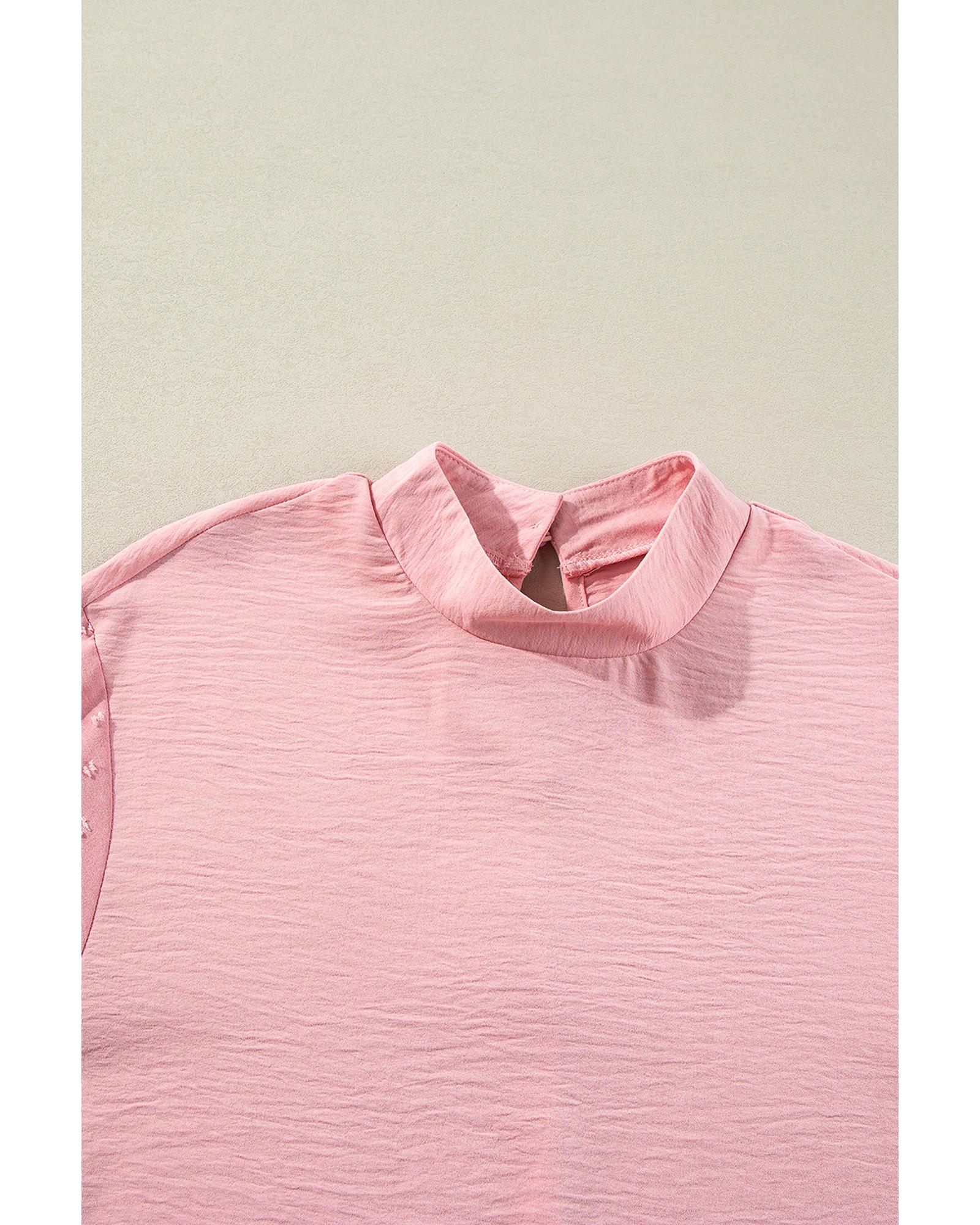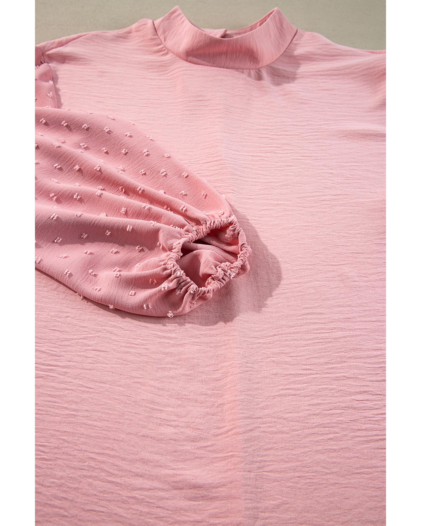 Gossamer Pink Swiss Dot Balloon Sleeve Loose Blouse – S