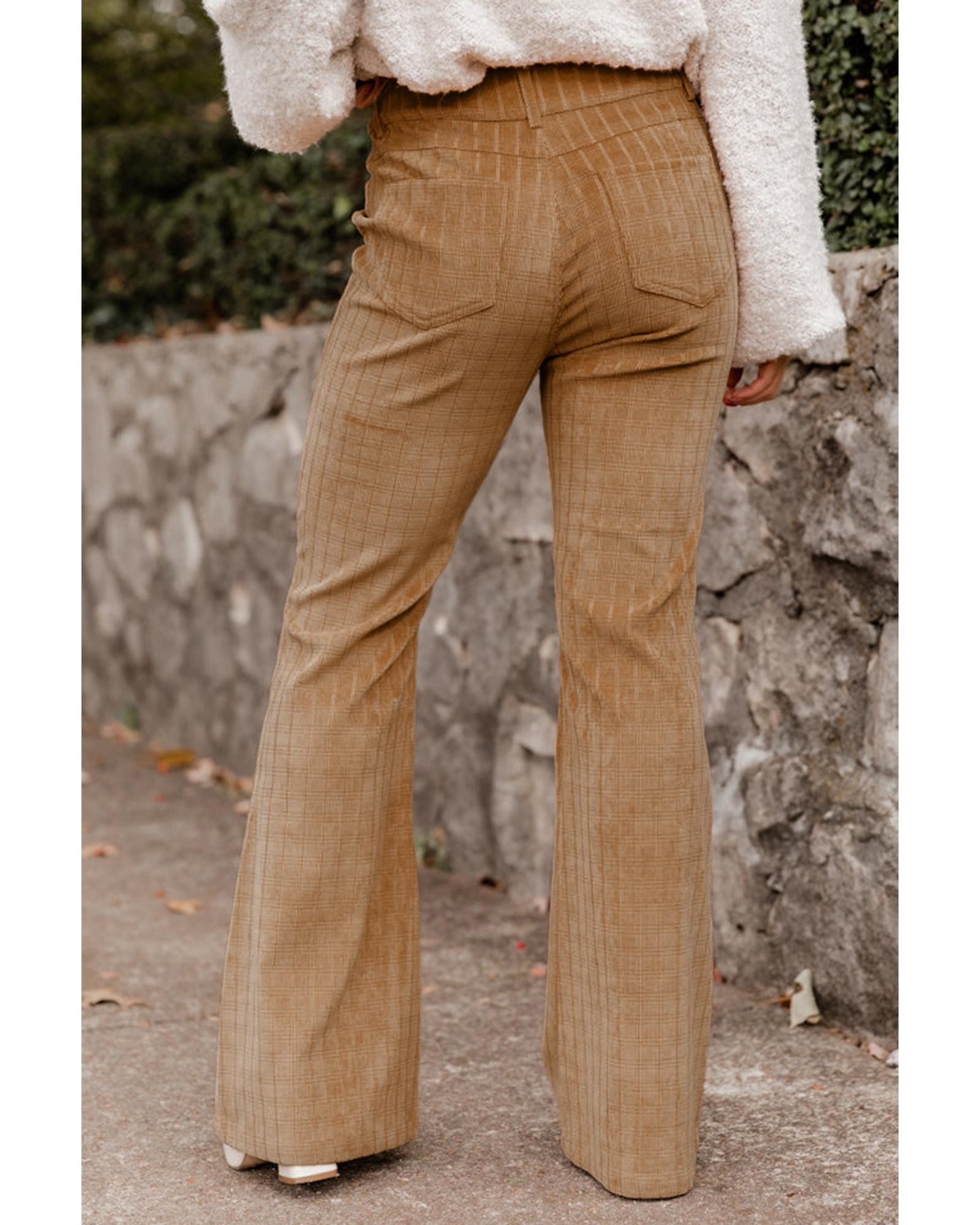 Grapefruit Orange Checkered Corduroy Flare High Waist Pants – XL