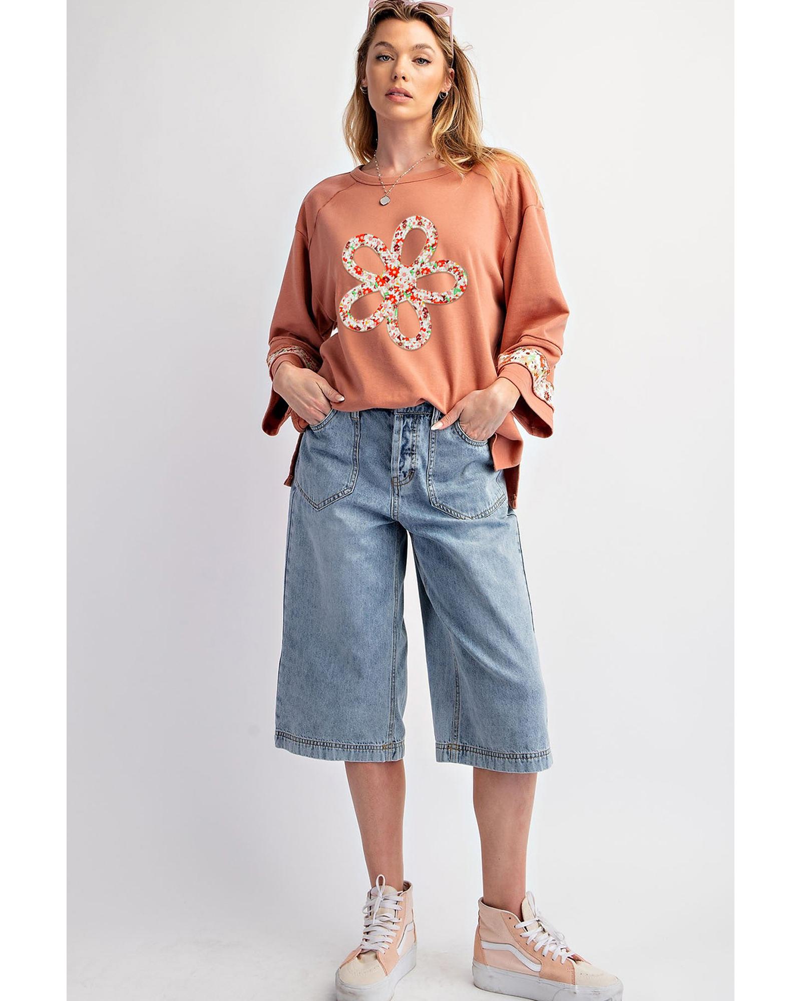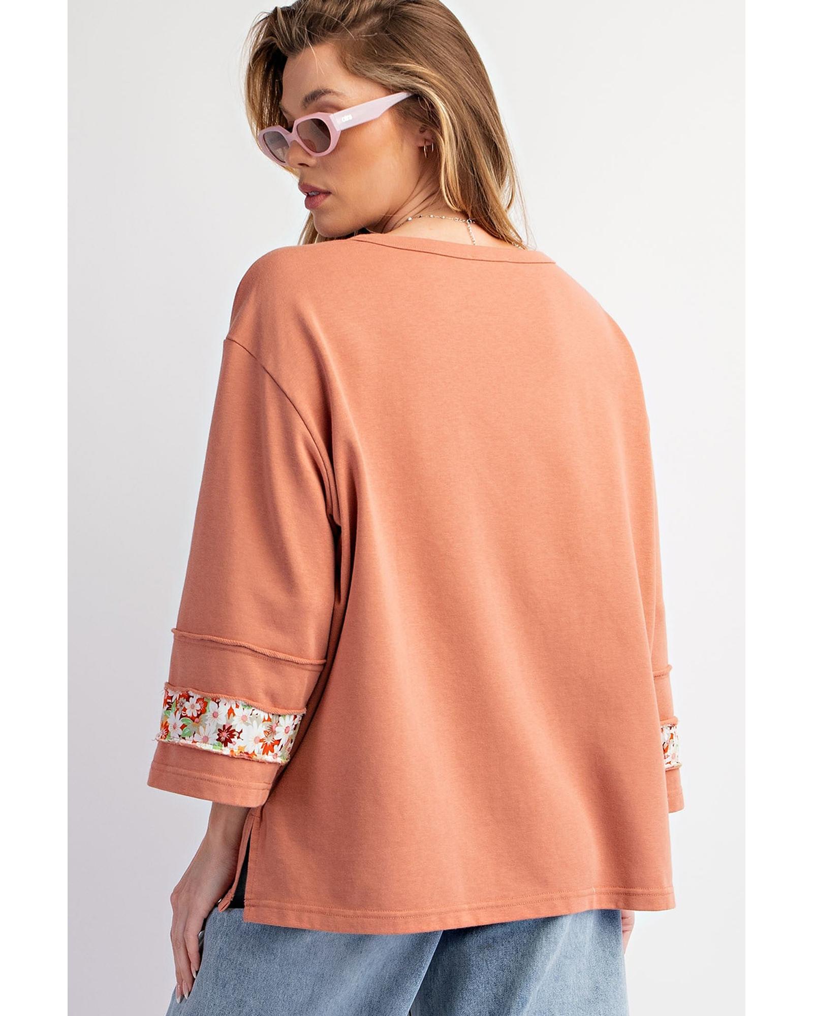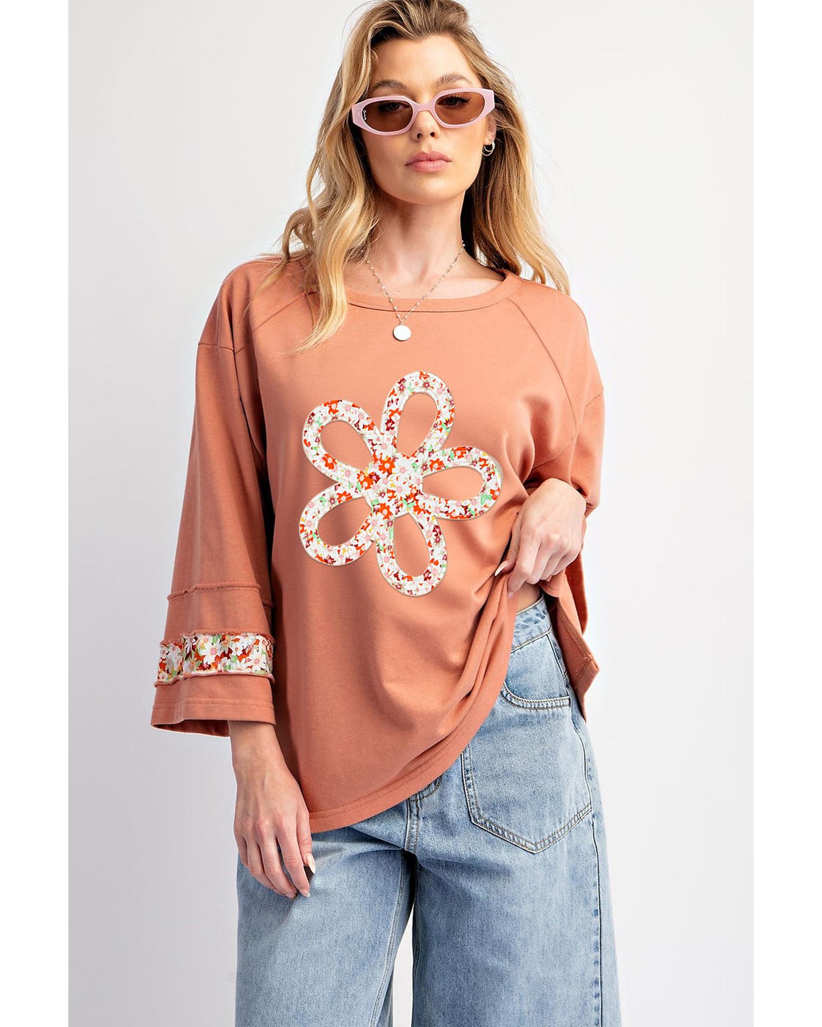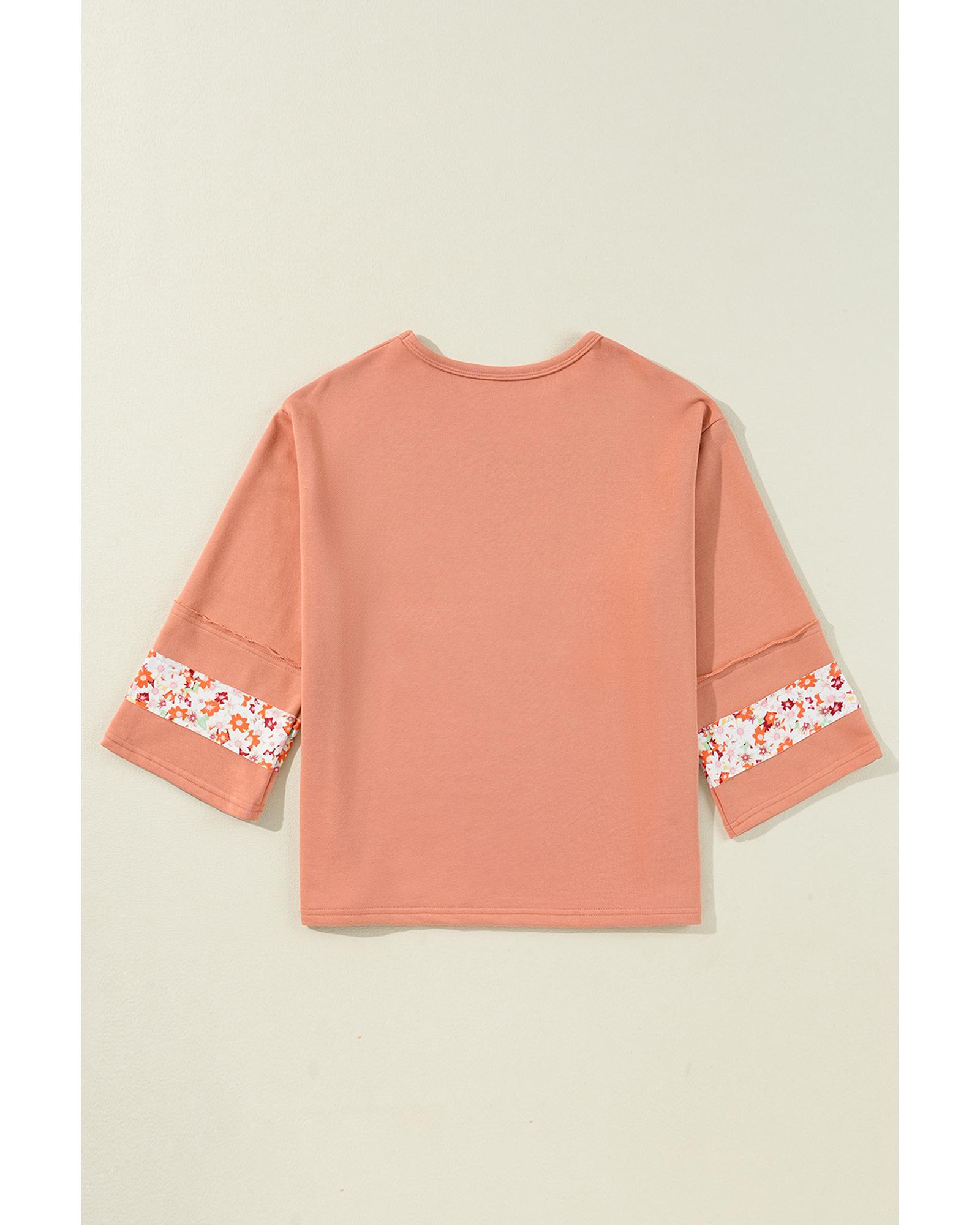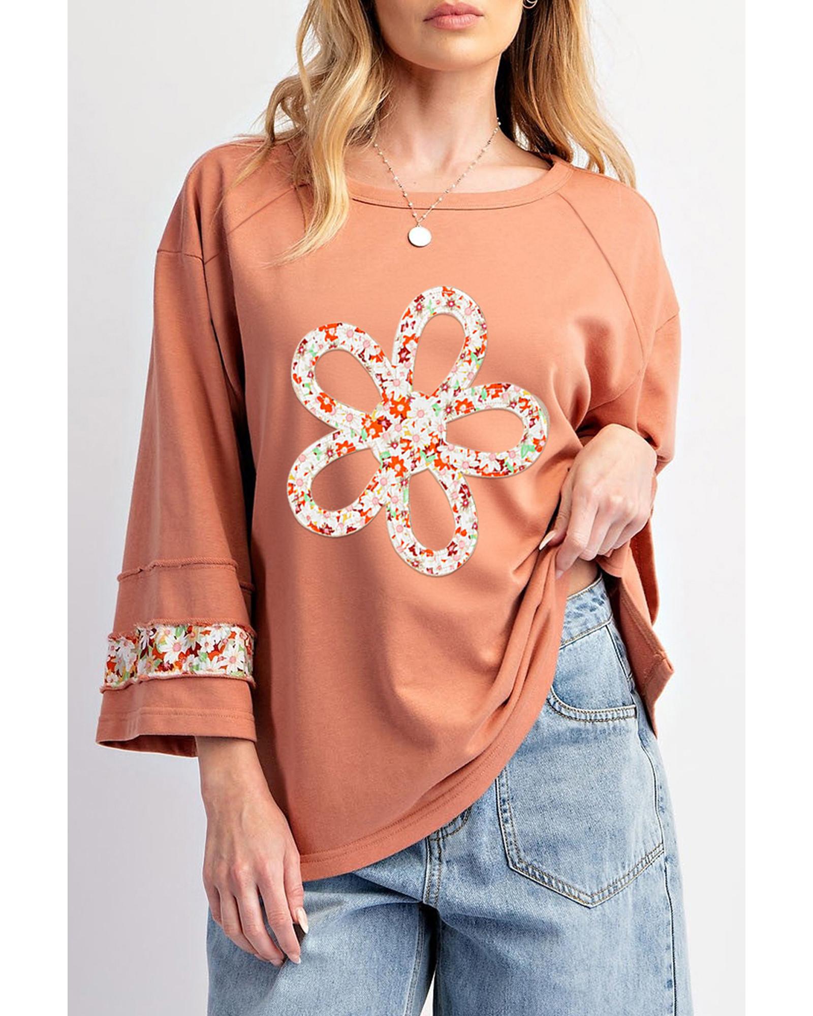 Grapefruit Orange Flower Patch Graphic Exposed Seam Wide Sleeve Top – XL
