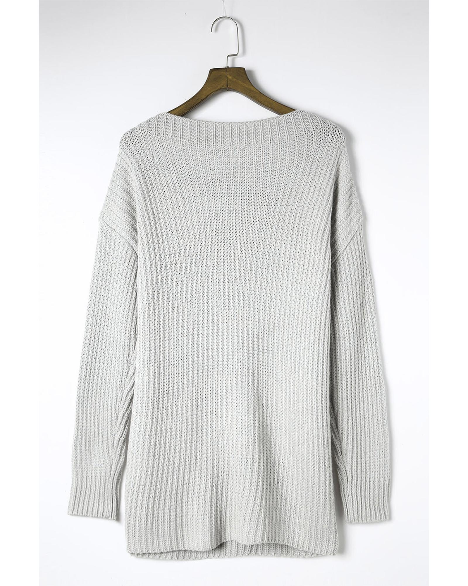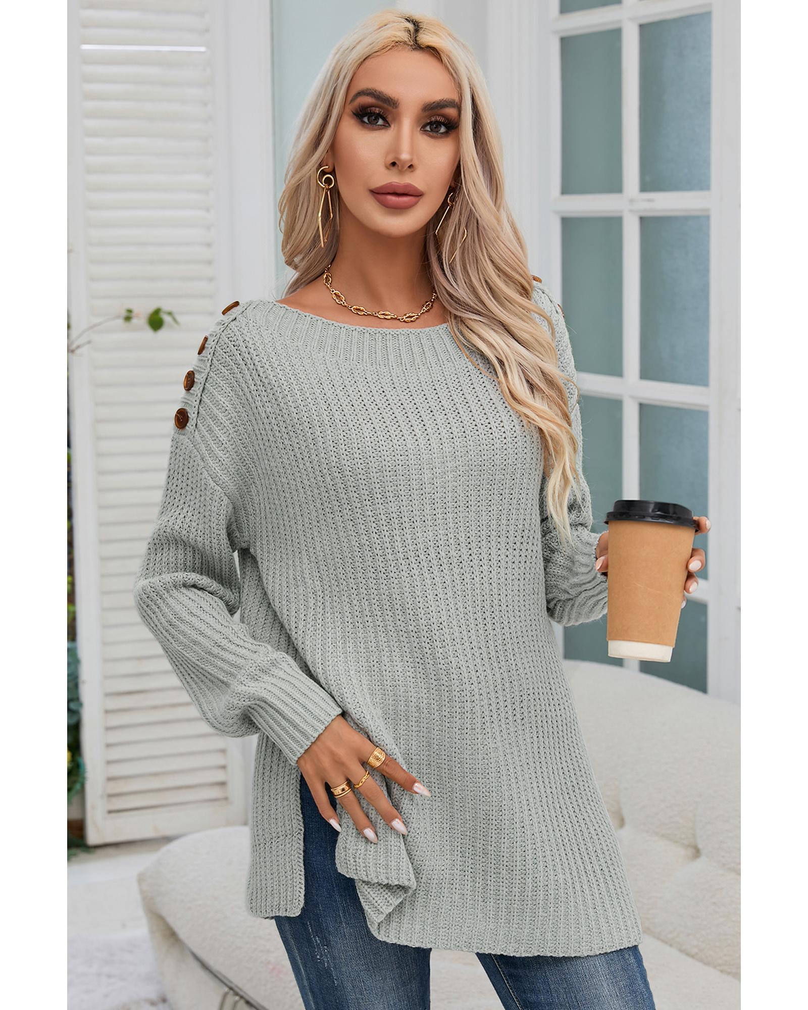 Gray Buttoned Drop Shoulder Oversized Sweater – L