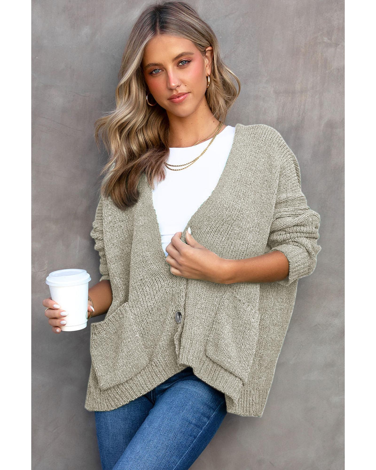 Gray Buttons Front Pocketed Sweater Cardigan – M