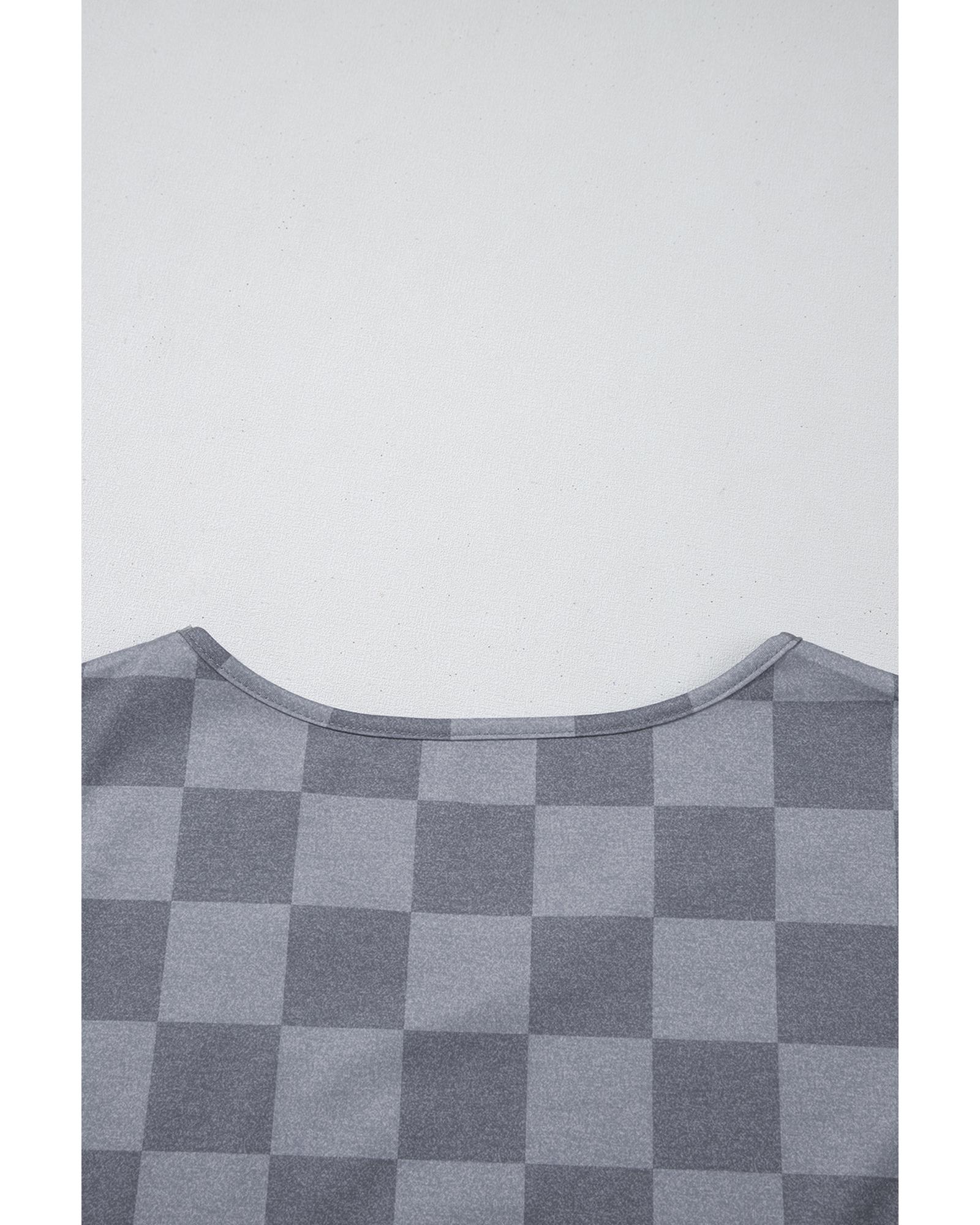 Gray Checkered V Neck Tee Drawstring Shorts Lounge Set – XL