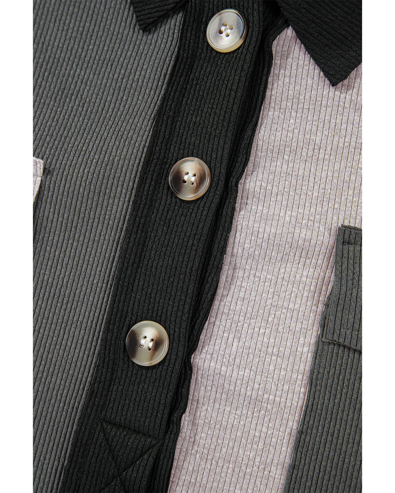 Gray Colorblock Ribbed Collared Oversized Sweatshirt – L