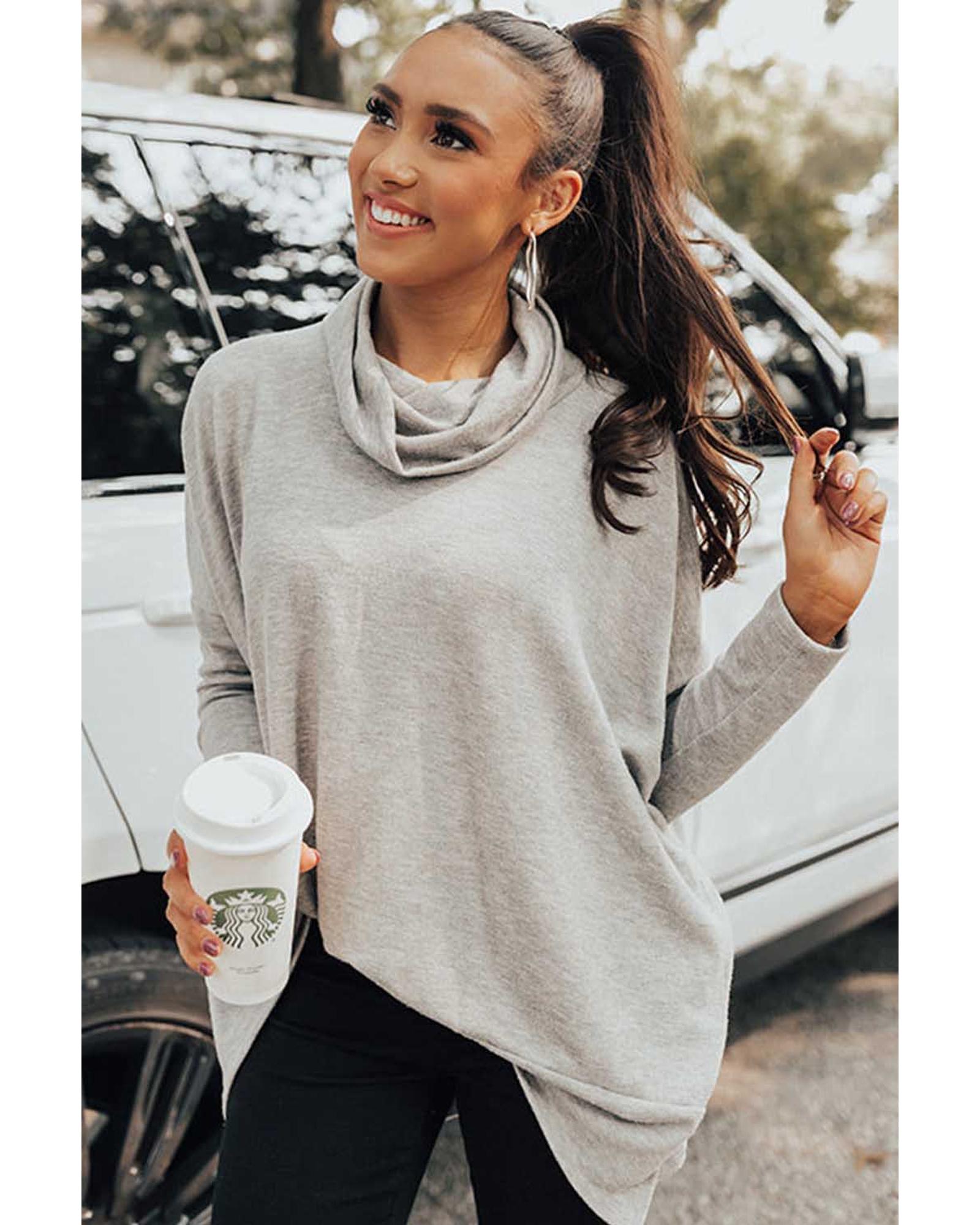 - Gray Cowl Neck Shift Tunic Top