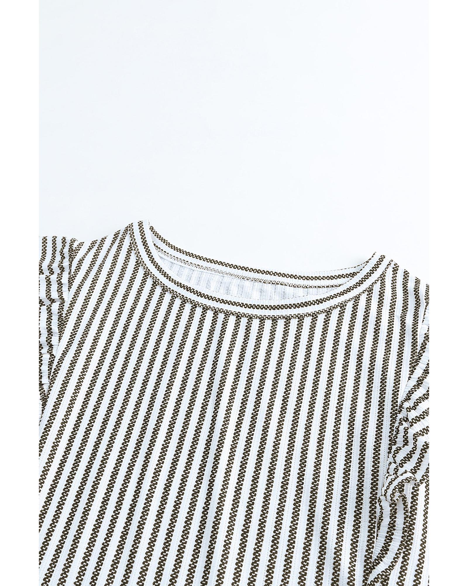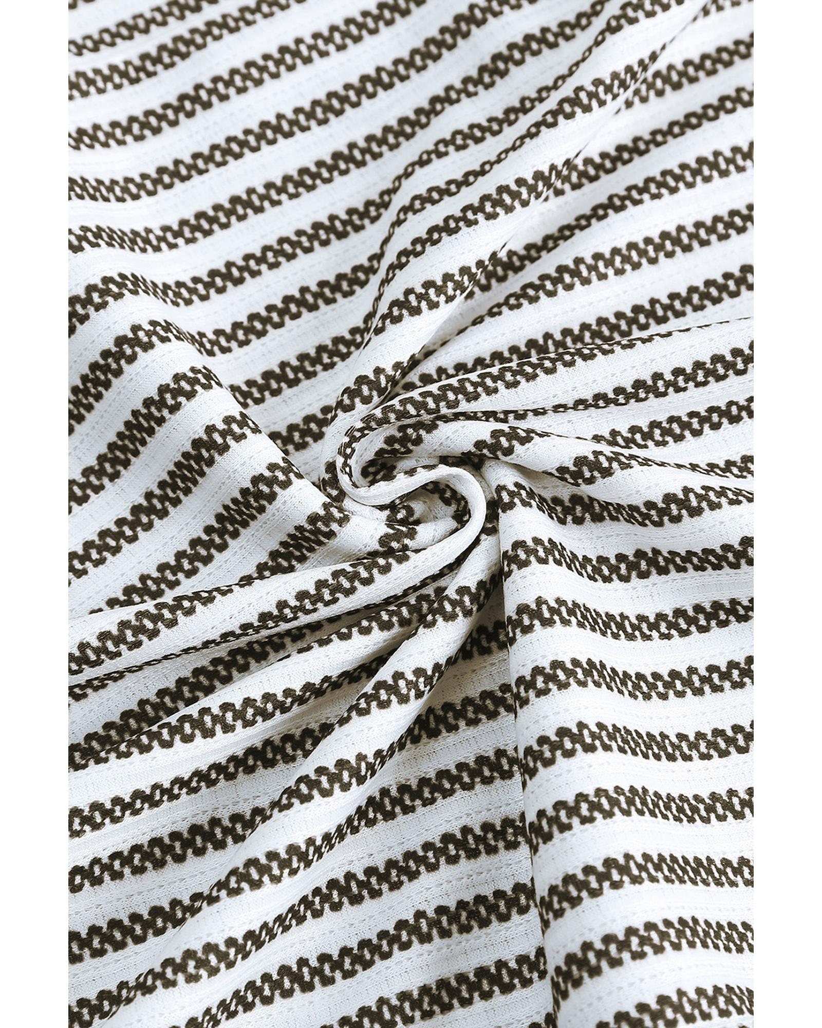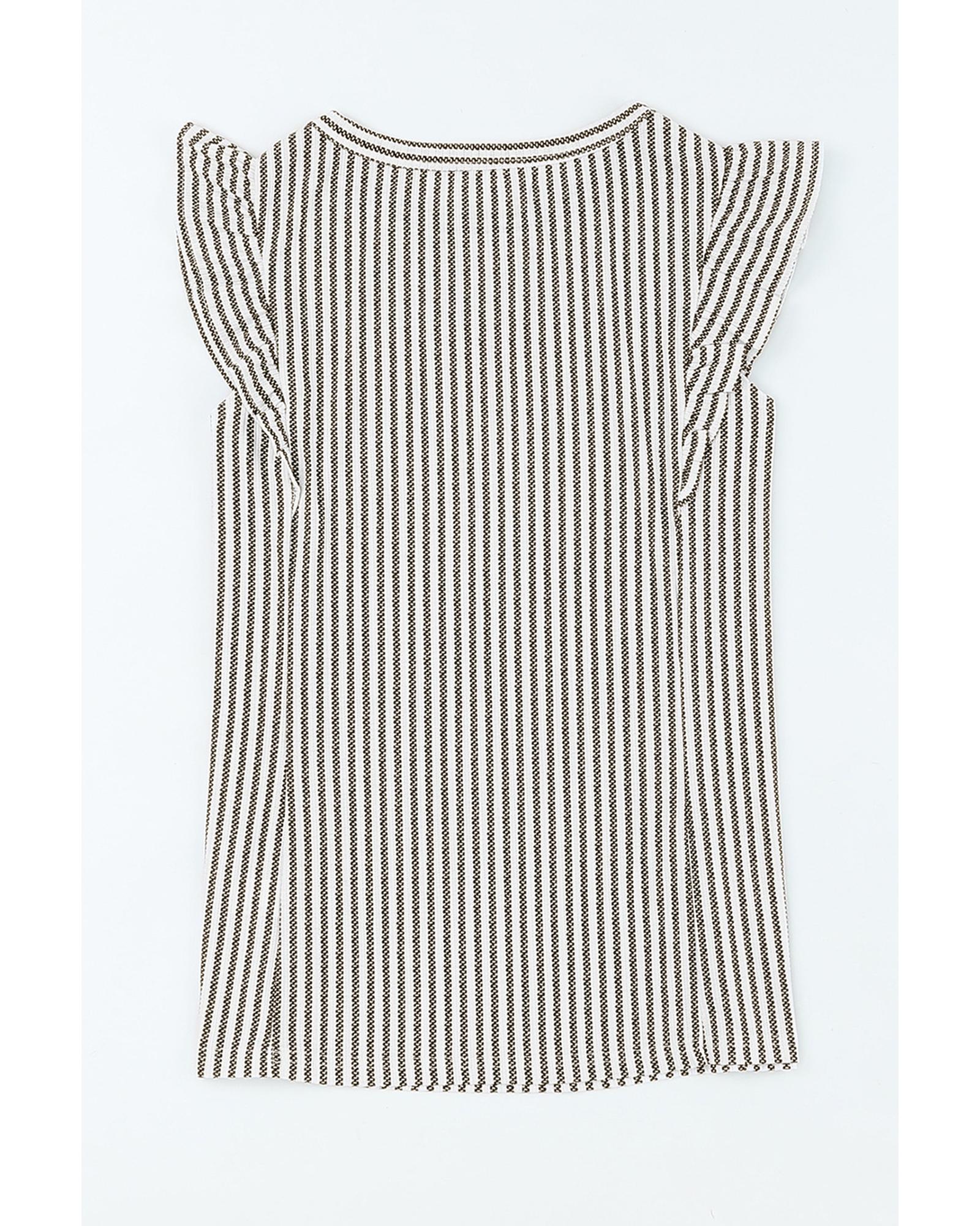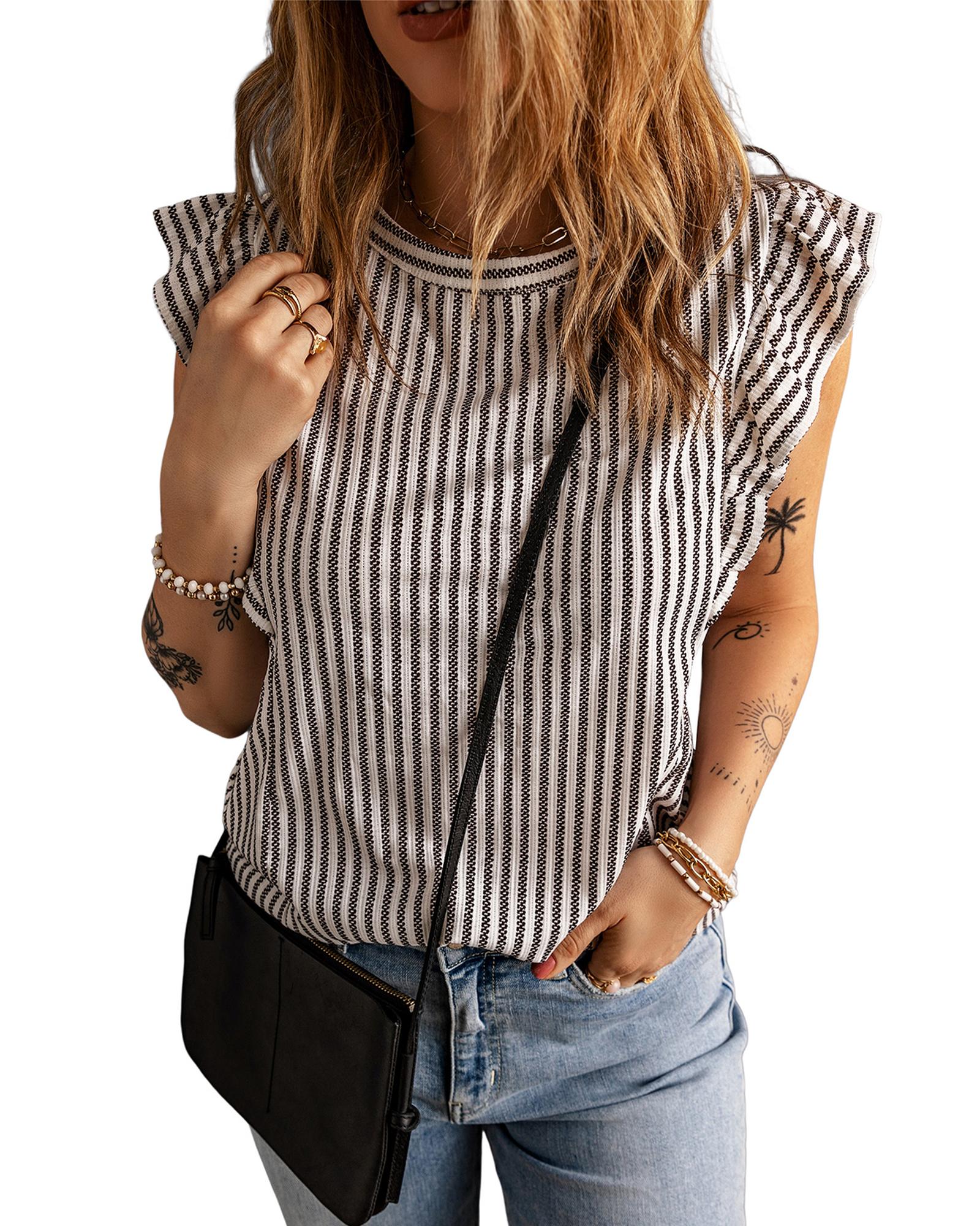 Gray Crew Neck Ruffled Striped Tank Top – M