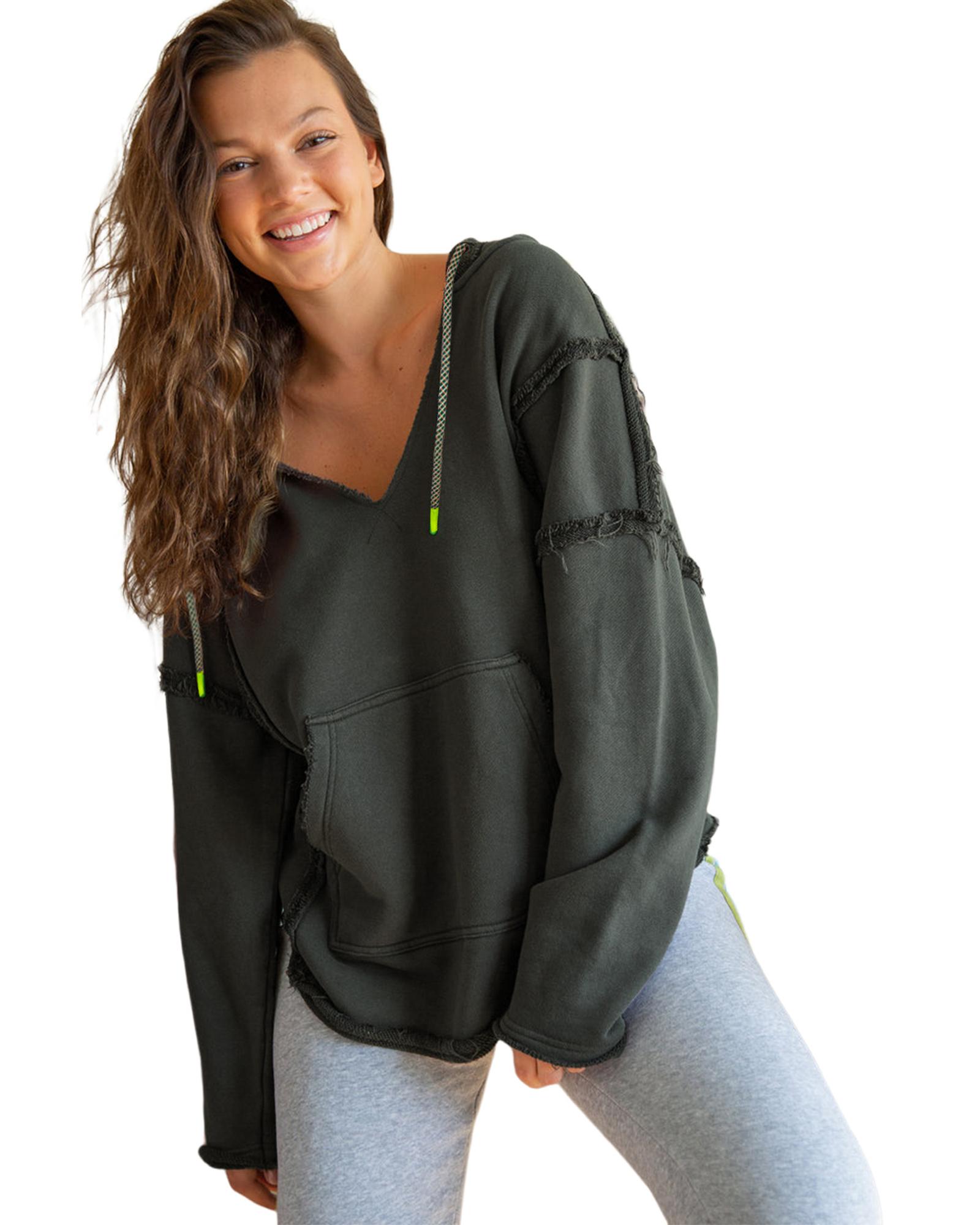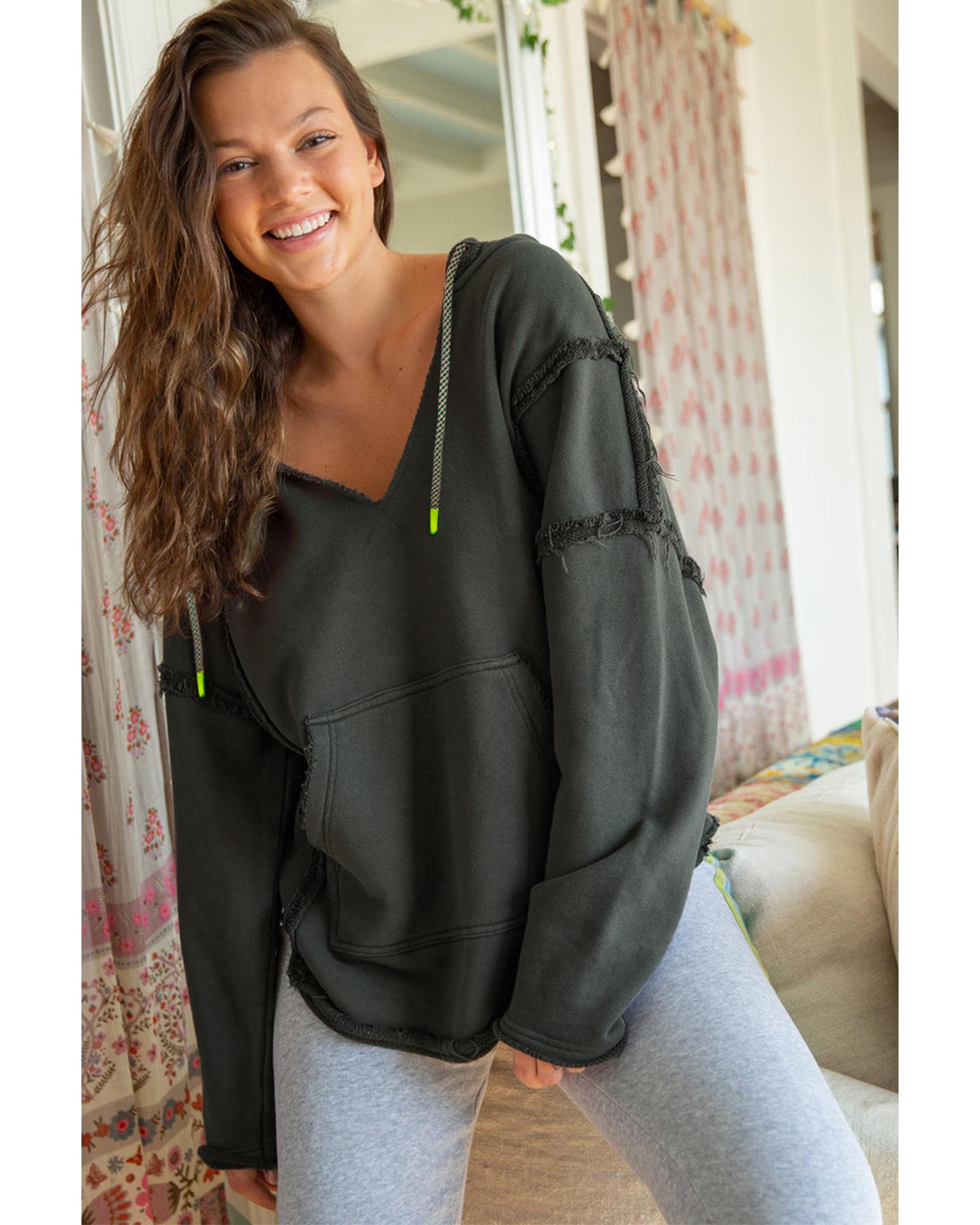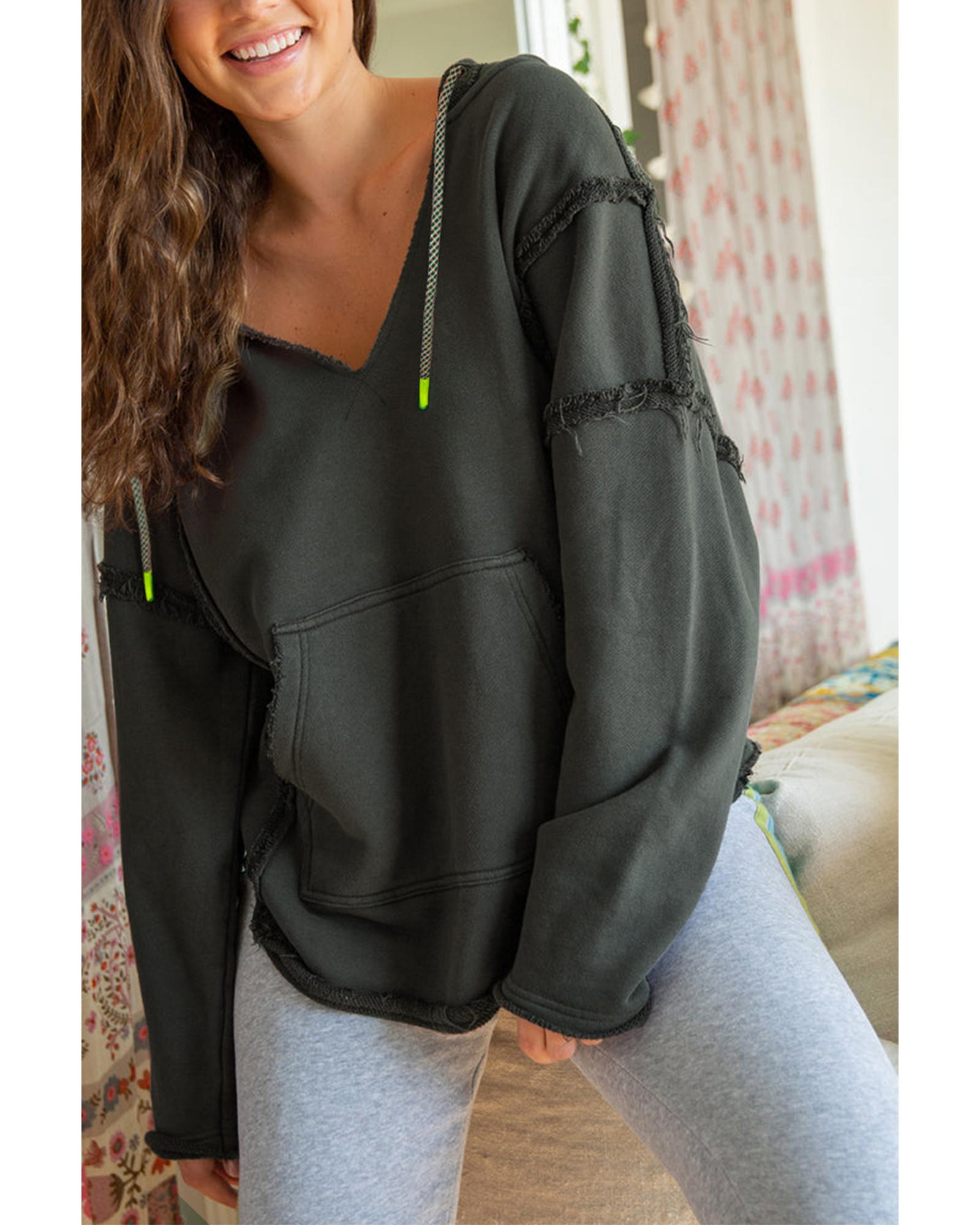 Gray Exposed Seam Raw Edge Hoodie with Pockets – L