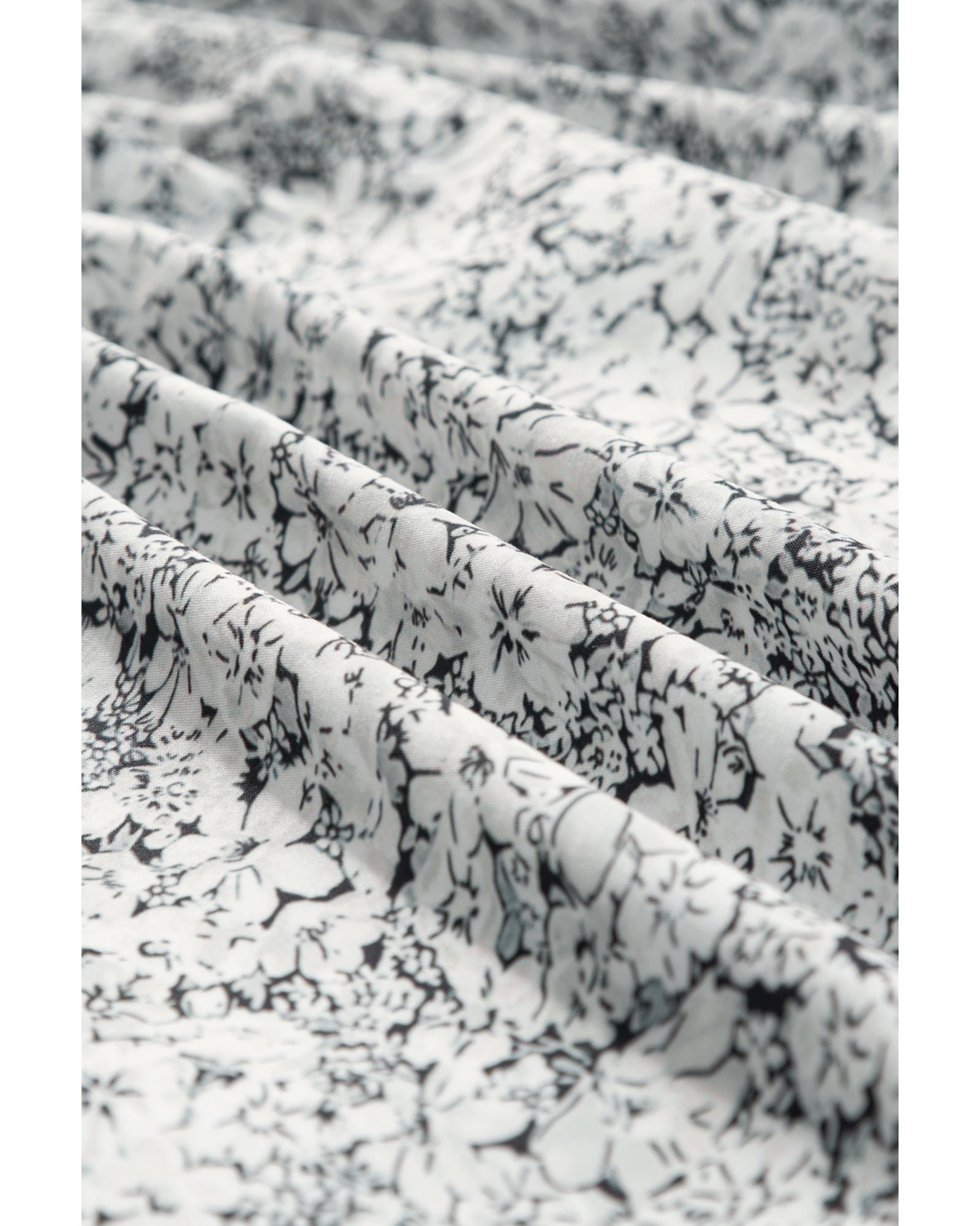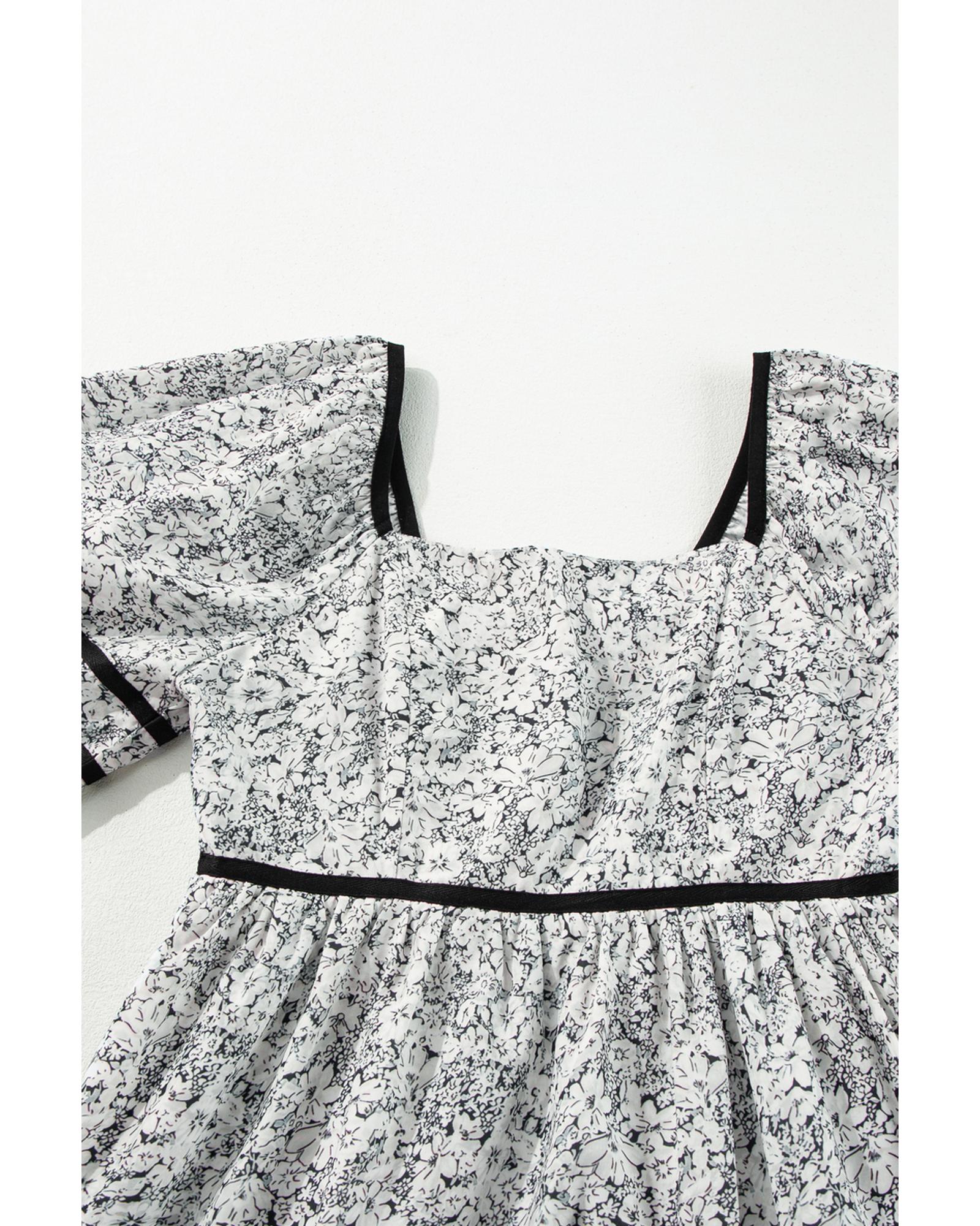 Gray Floral Print Open Back Balloon Sleeve Square Neck Mini Dress – L
