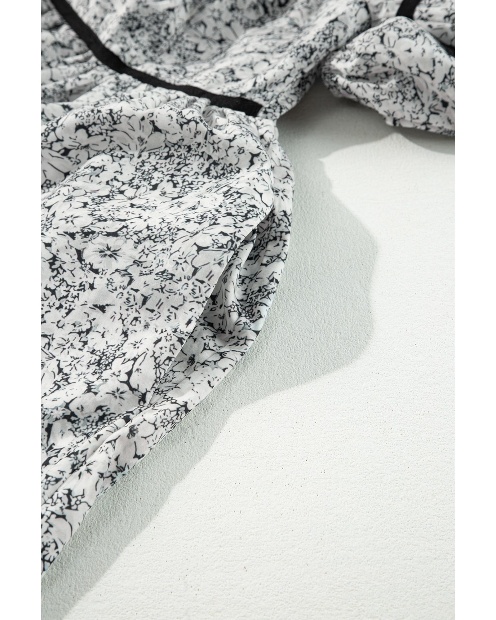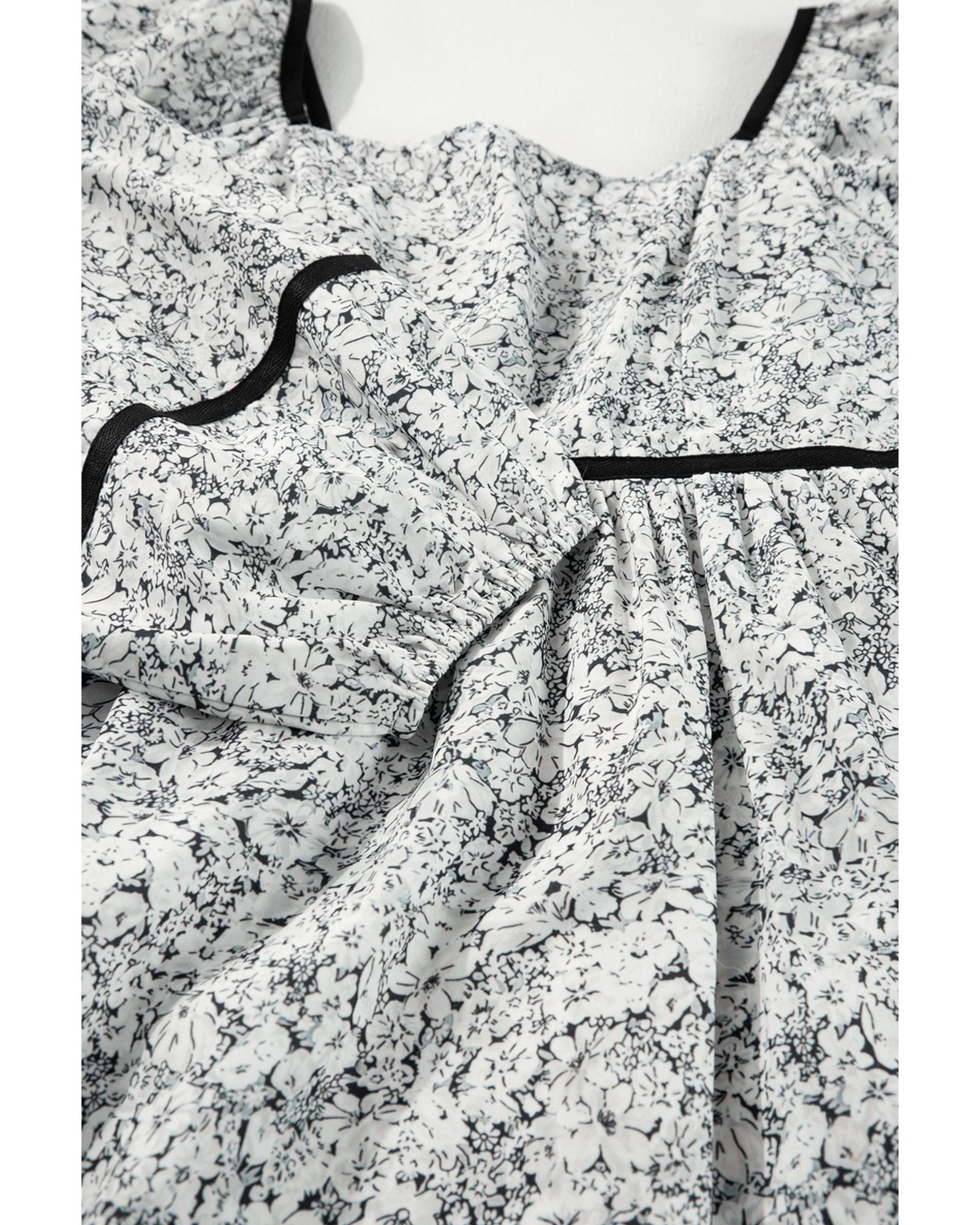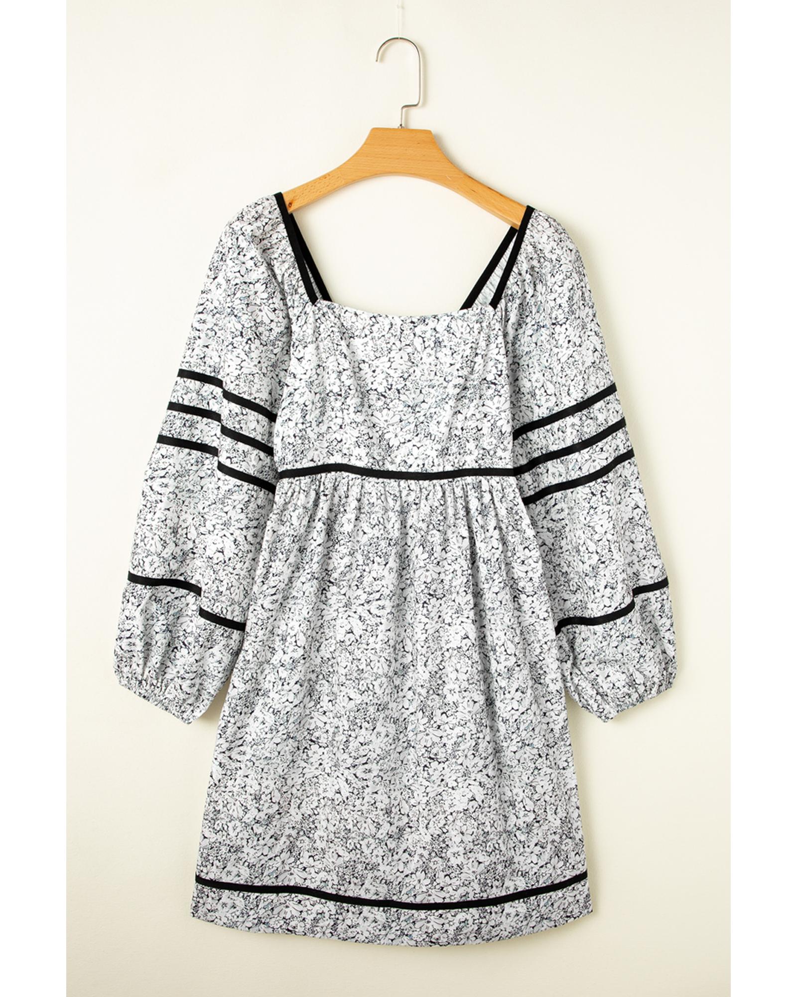 Gray Floral Print Open Back Balloon Sleeve Square Neck Mini Dress – M