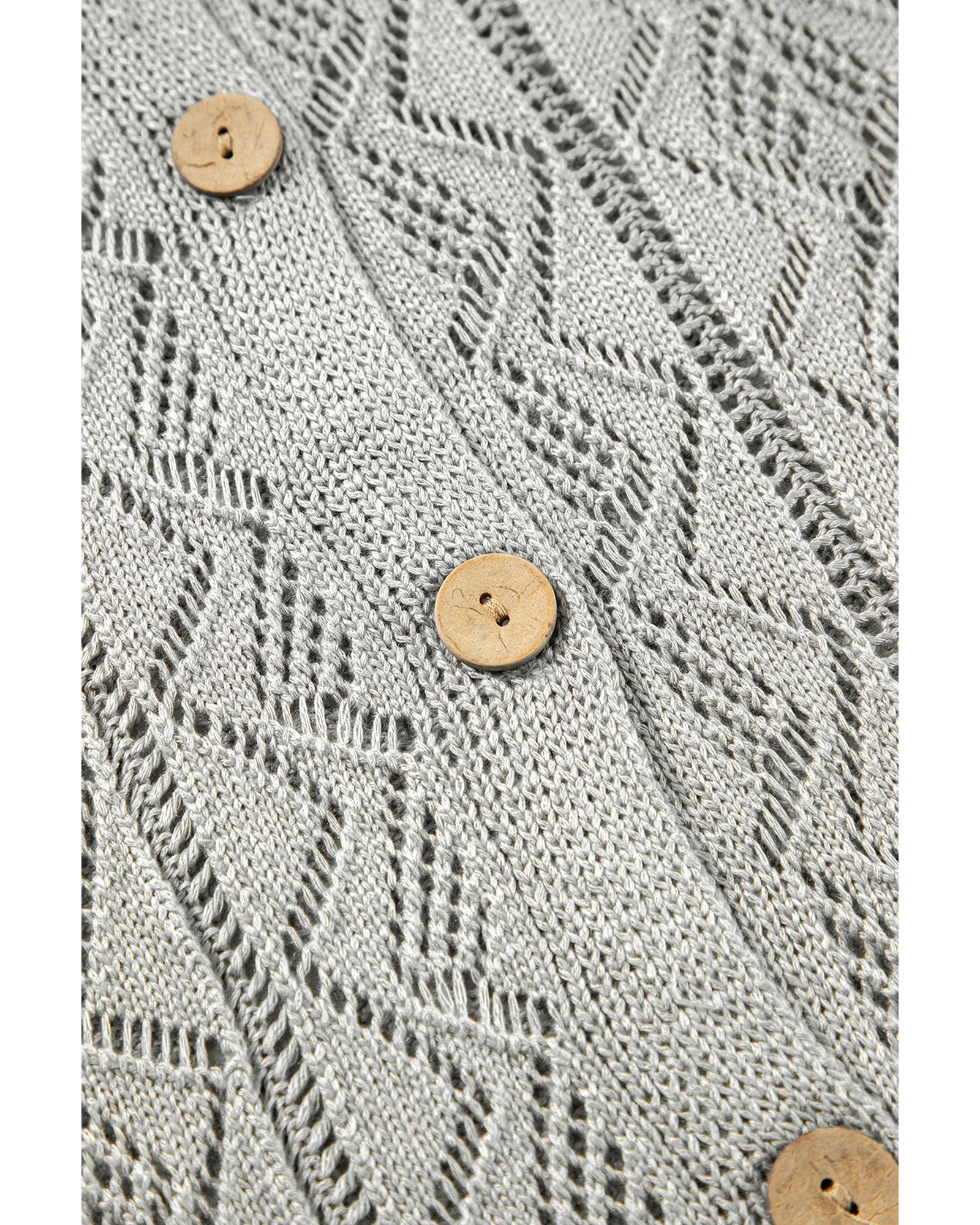 • Gray long cardigan with intricate knit hollow out details