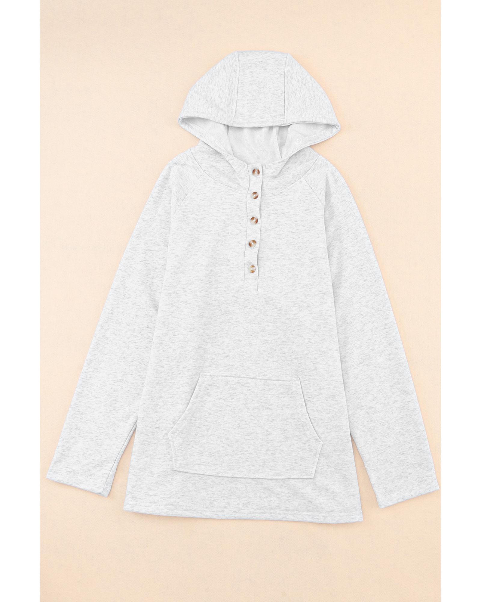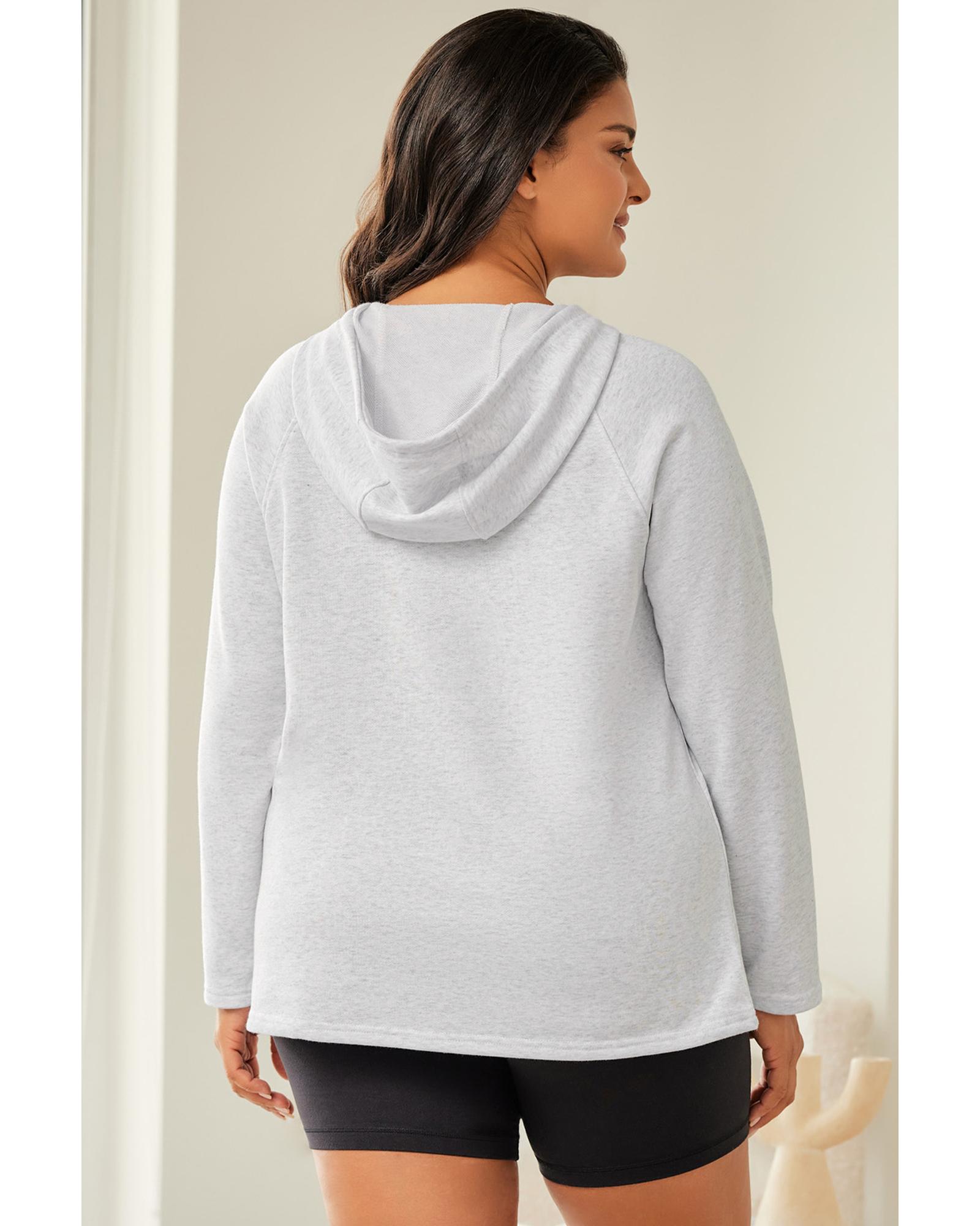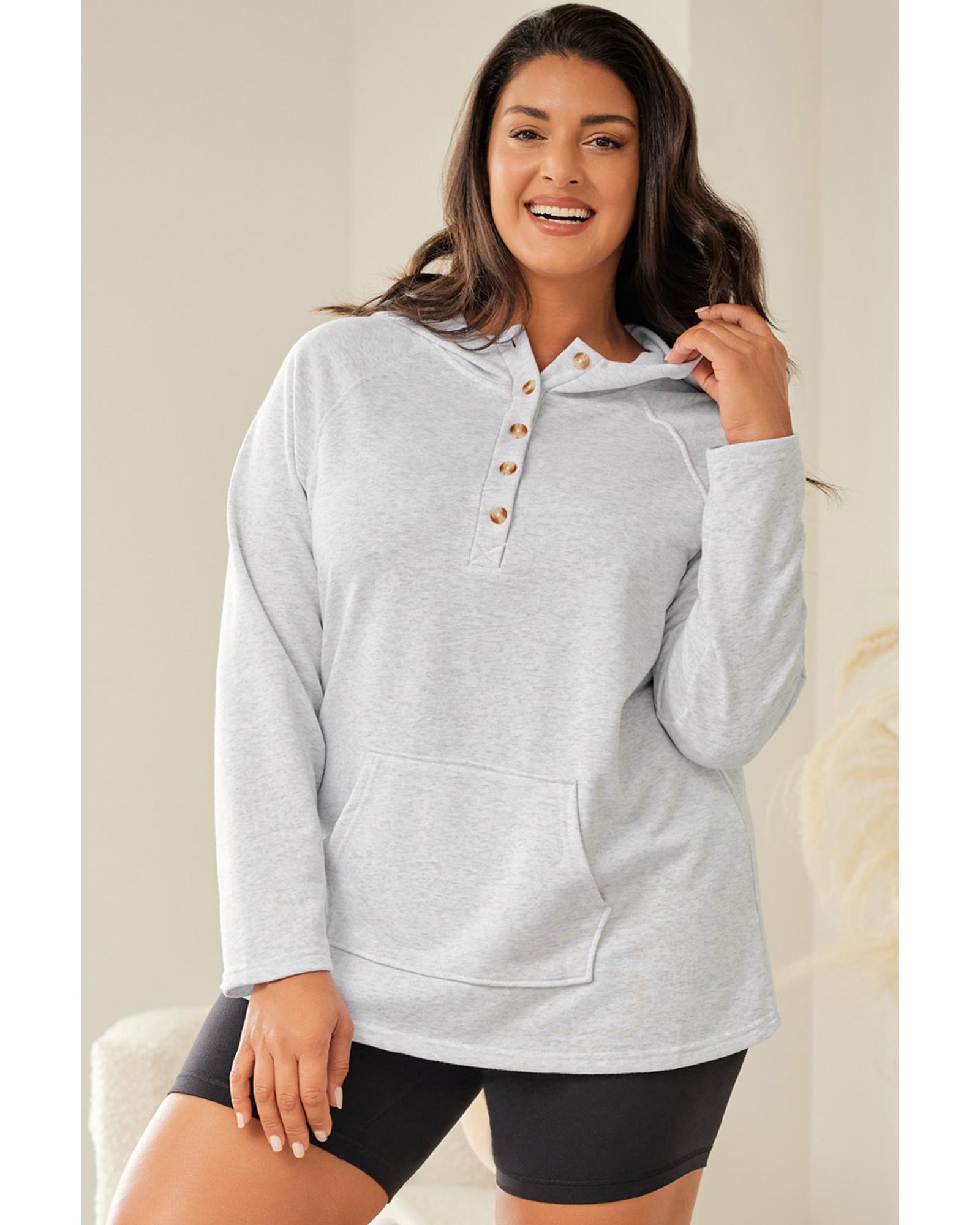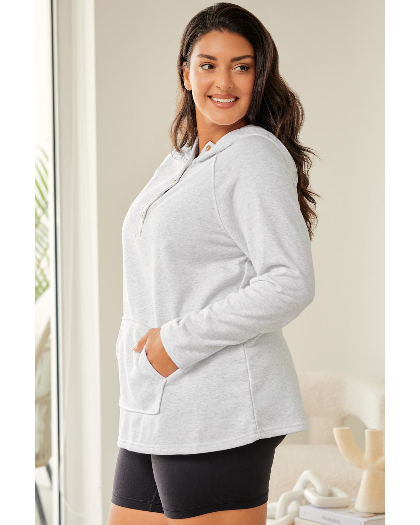 Gray Plus Size Kangaroo Pocket Henley Button Hoodie – 3X