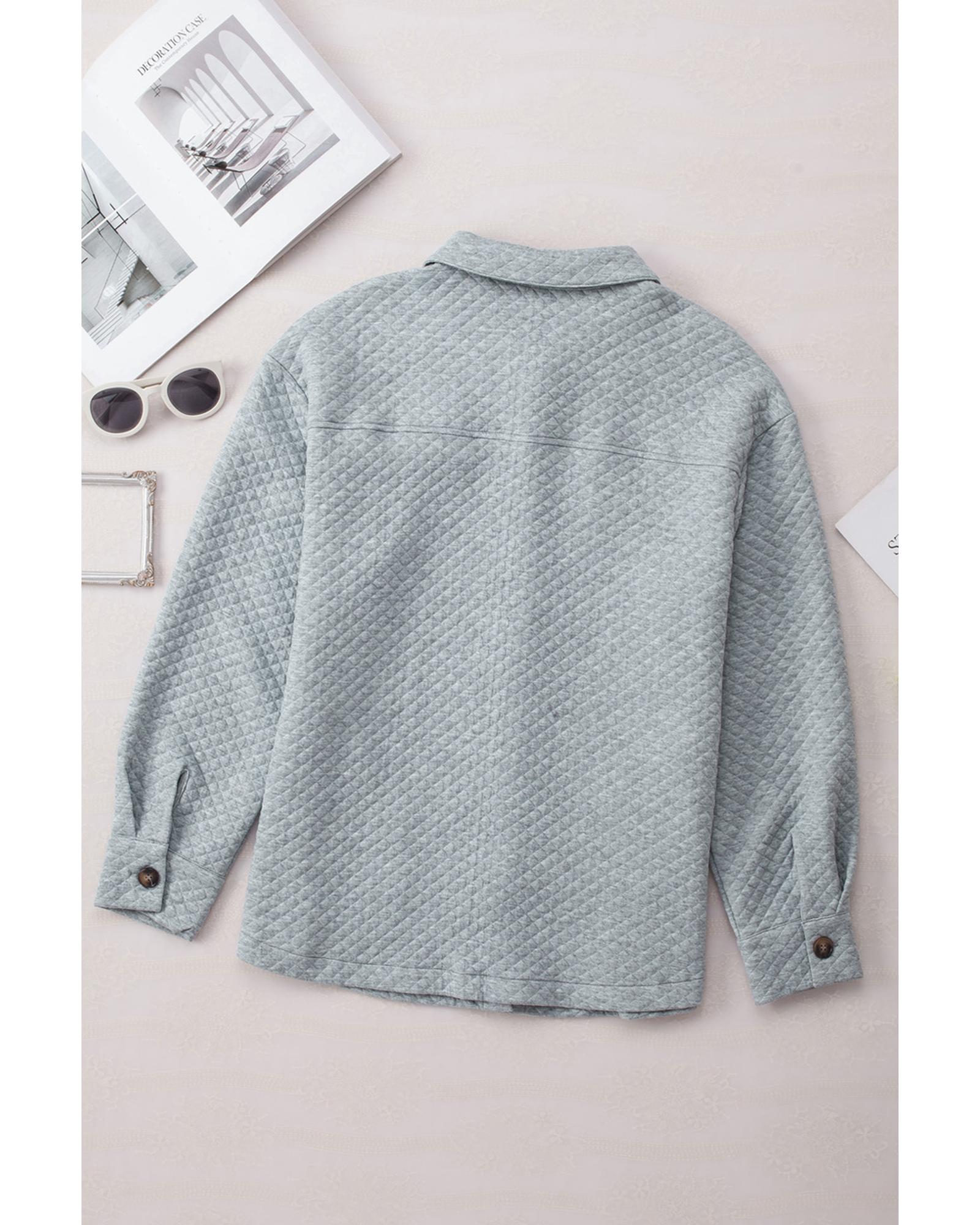 - Gray Retro Quilted Flap Pocket Button Shacket