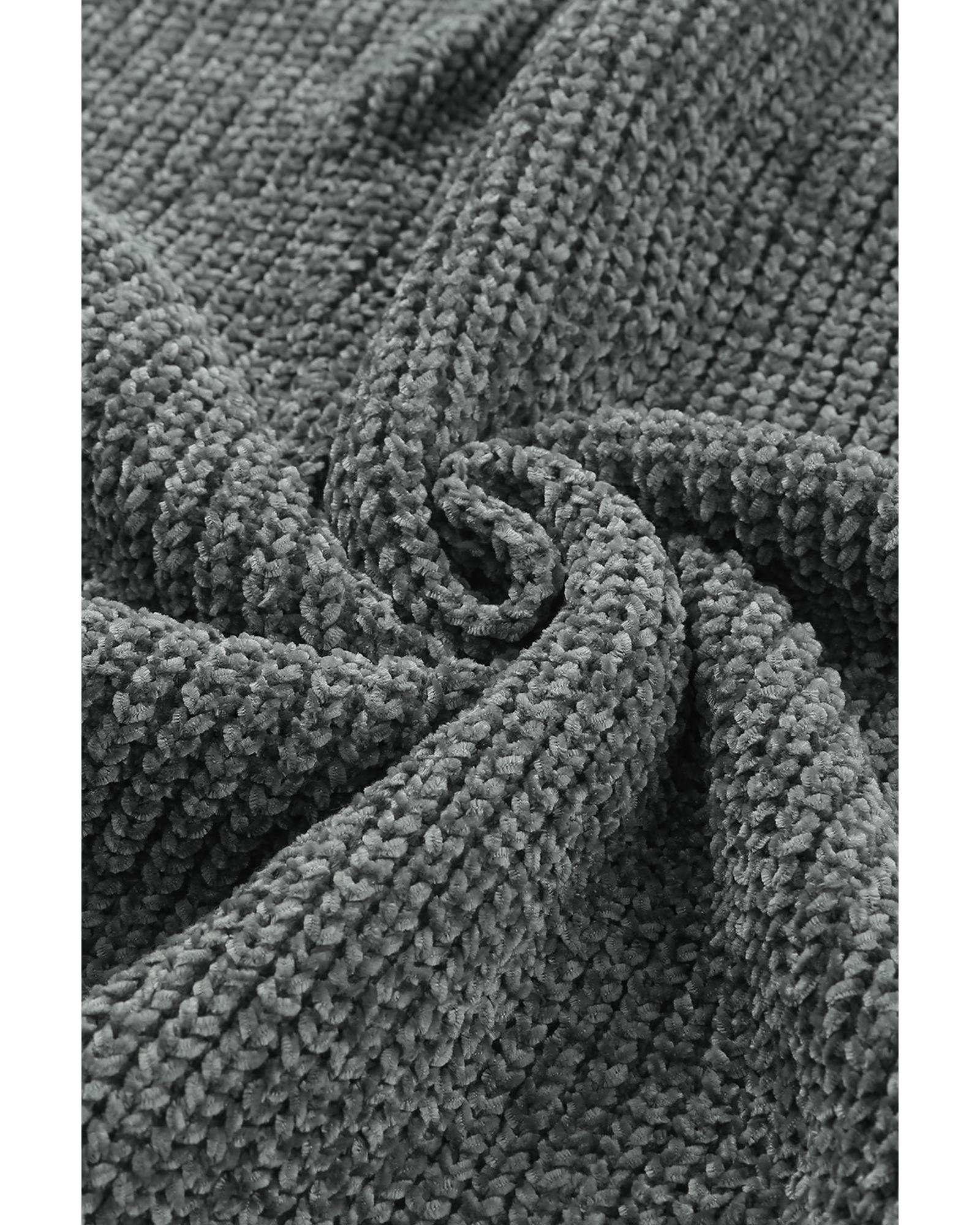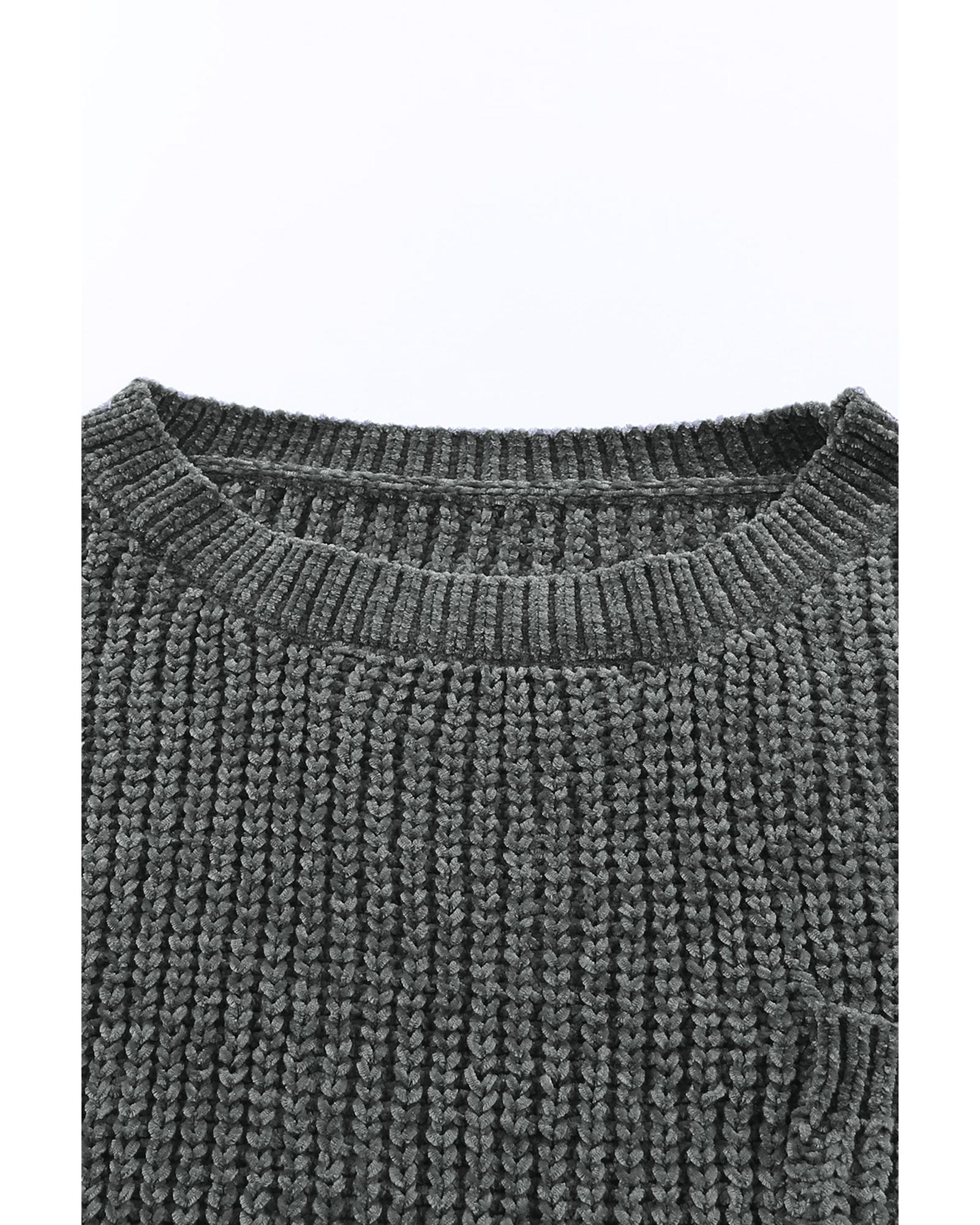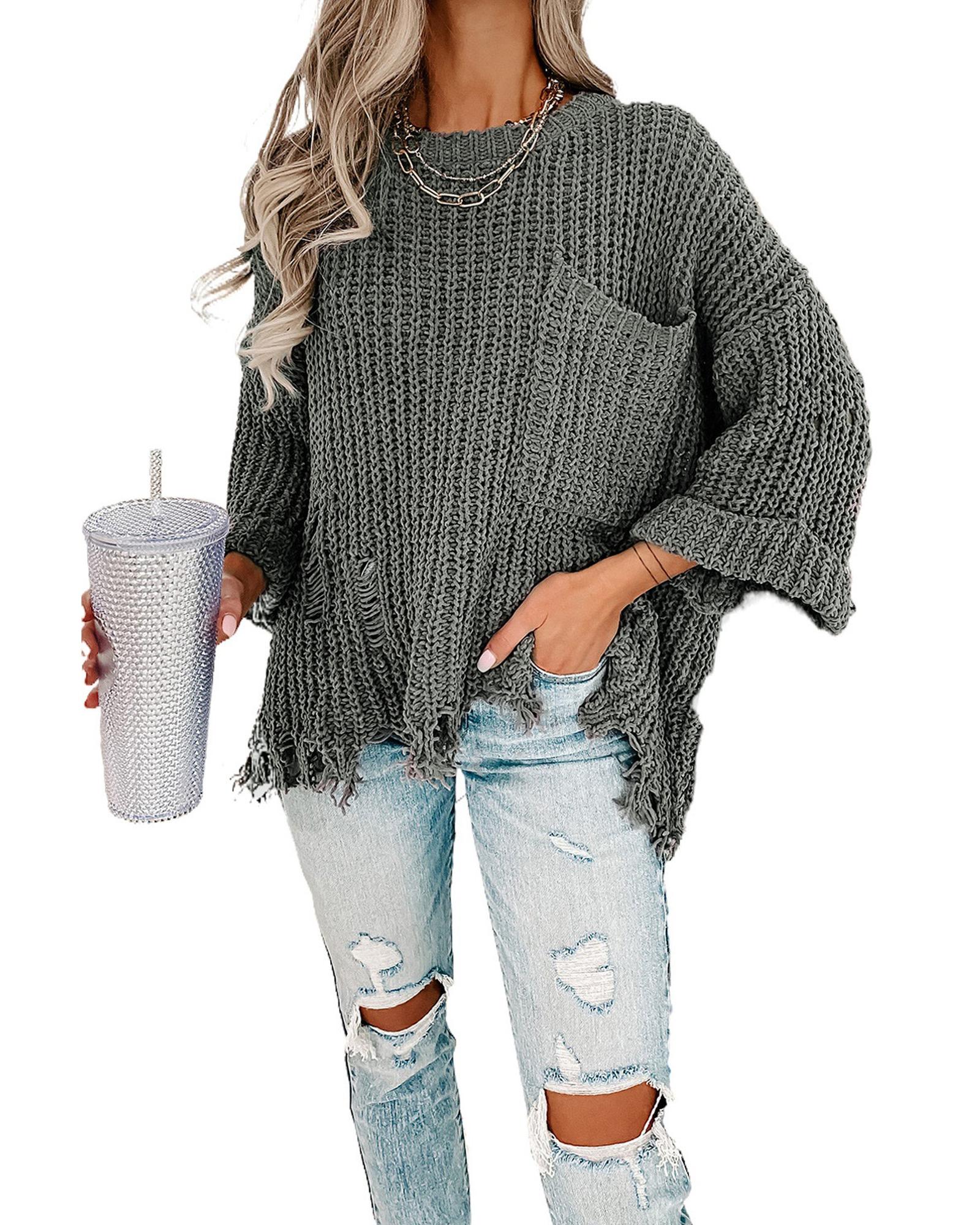 Gray Ripped Raw Hem Chunky Pullover Sweater – L