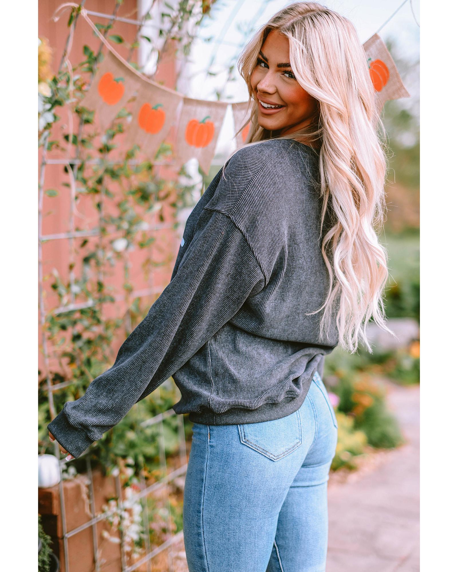 • Gray Sequin St Patrick Clover Patch Corded Sweatshirt