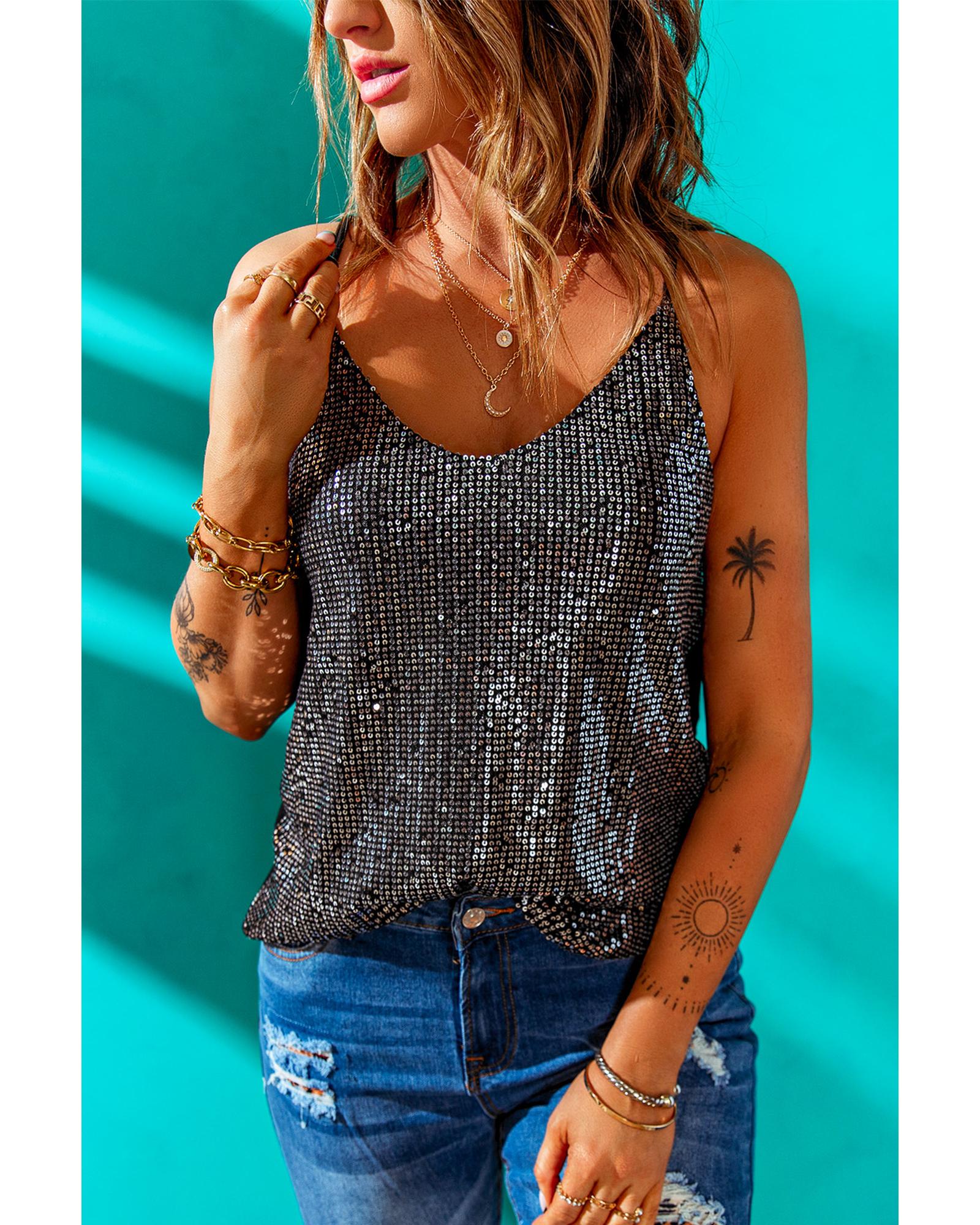 Blue Stripe Contrast Round Neck Sleeveless Slim Top - L